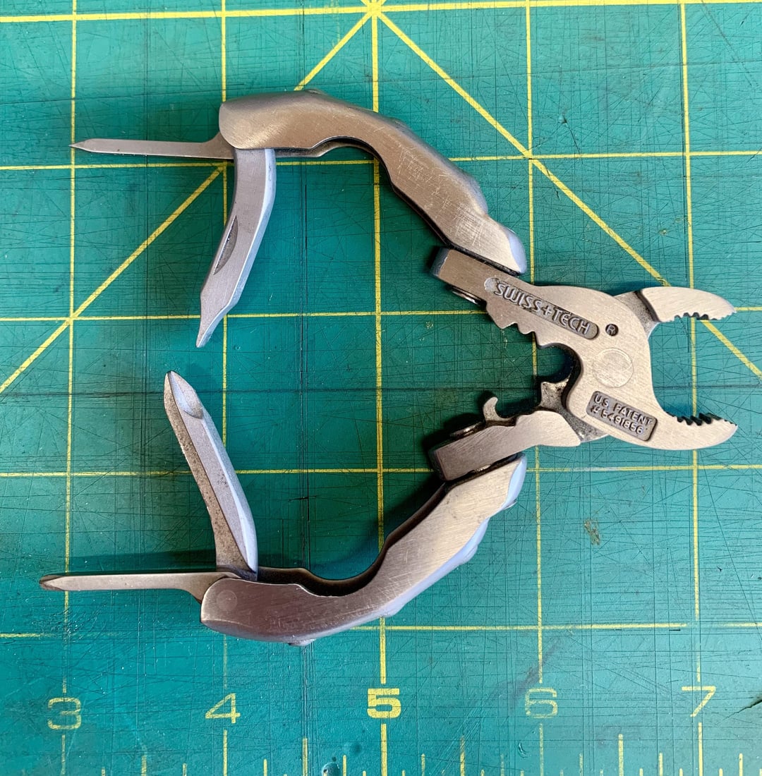 In TOOLS Found in bottom tray of my toolbox : Swiss+Tech micro multitool…. May 24, 2024 Share Share on Facebook Share on Twitter Pinterest LinkedIn Checked company out on-line … page full of patents. Appear to be focused on “ micro multitools”, and in production since mid-90’s. Seems targeted for key chains. I had forgotten I had this ! 🤣 About the size of a matchbook . by Street_Profit_8044 Multi ToolsMultiToolsTools Write A CommentYou must be logged in to post a comment.
