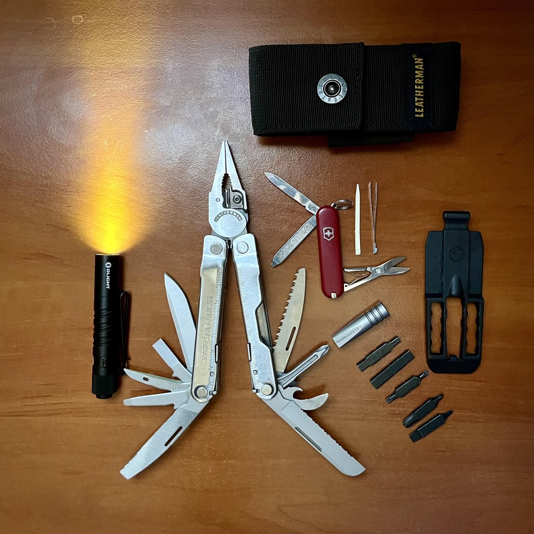 Now my trouble-solver set is complete with rough & tough Leatherman Rebar, added with bit adapter and some commonly used bits, along with Victorinox Classic SD for delicate tasks, plus AAA-powered Olight i3T EOS with clip, and a sturdy cordura Leatherman case to keep it organised as a modular kit to be placed either in my backpack or in commuting messenger bag whenever needed.