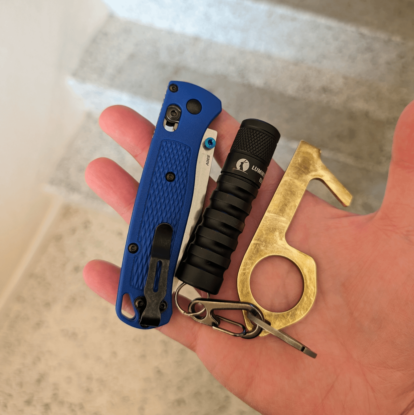 In EDC Friday Shorts EDC June 1, 2024 1. BM bugout 2. Lumintop EDC 15 3. Brass door knob hookby CameUpMilhouse EDC Prev Post I was expecting a mini cleaver. This thing is freakin massive 😂 June 1, 2024 Next Post Microjimbo! June 1, 2024 Related Posts Weekend Carry – Small Town, 12 Acre Plot April 11, 2026 Steel Pocket Pen Options April 11, 2026 I like black. 37m entrepreneur/engineer. April 11, 2026Write A CommentYou must be logged in to post a comment.