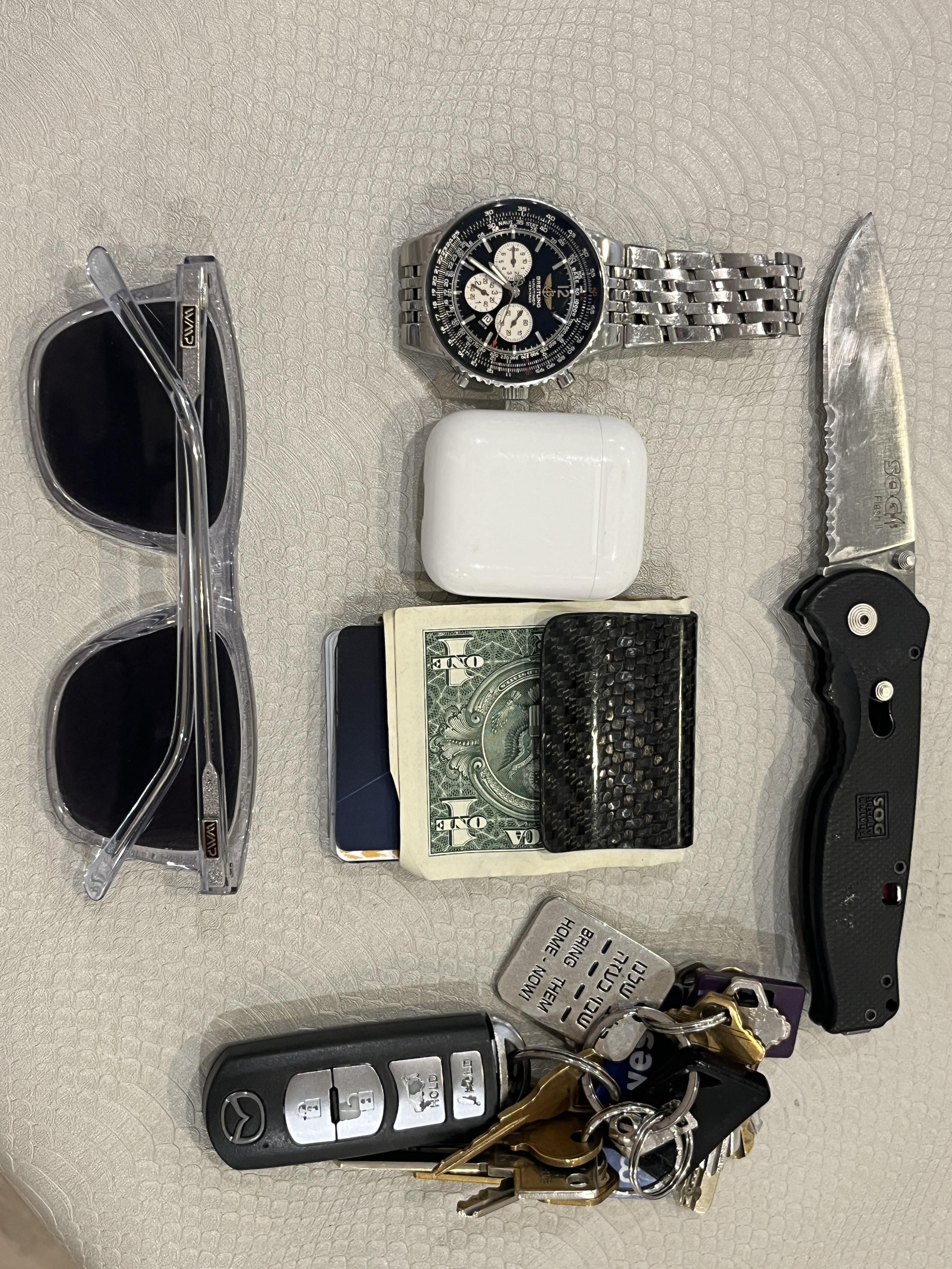 In EDC EDC until CCW arrives June 5, 2024 Knife- Sog Flash 2Apple EarPods Wap sunglassesBreiing Navitimer A35350Carbon fiber wallet (Amazon)by powerbroker88 EDC Prev Post Side table check. June 5, 2024 Next Post PSA: Don’t fall asleep while cuddling your D4K June 5, 2024 Related Posts My first Spyderco January 15, 2026 Early Birthday Present from my wife and daughter January 15, 2026 Jan 2026 EDC January 15, 2026Write A CommentYou must be logged in to post a comment.