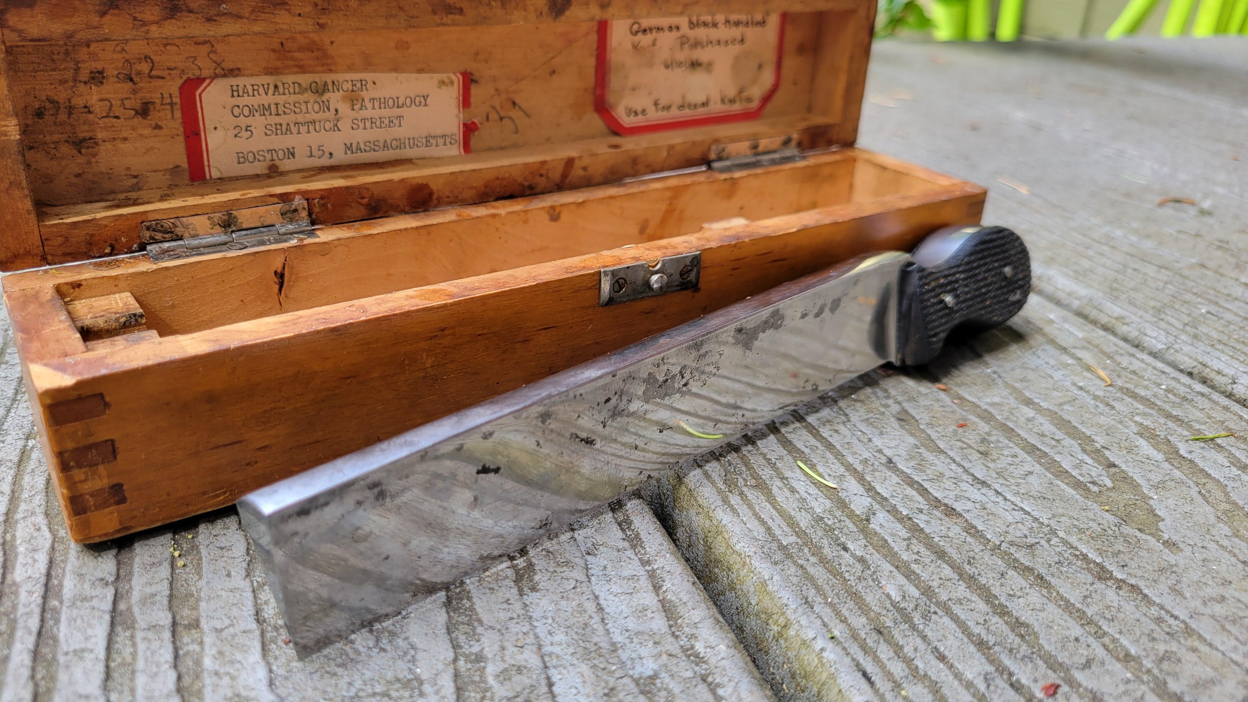 paul6524 2 years ago Not sure why it’s so thick, but the pathology department would be cutting removed organs, tumors, etc and slicing them for testing. Is it hollow ground? It’s a really interesting looking blade.