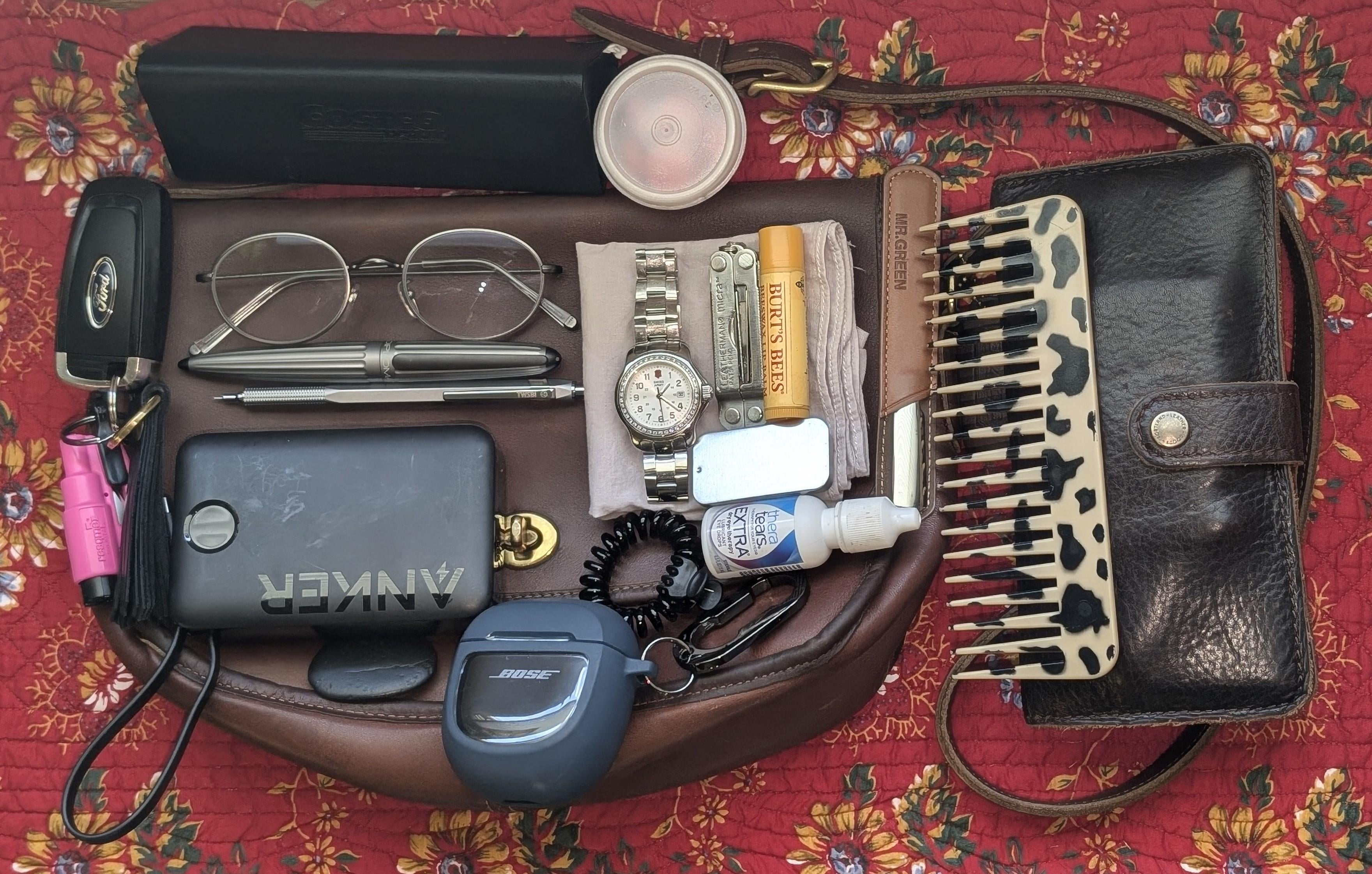 1. Middle-aged lady car keys (Ford Edge with 51k miles, with pink glass breaker on the key ring,