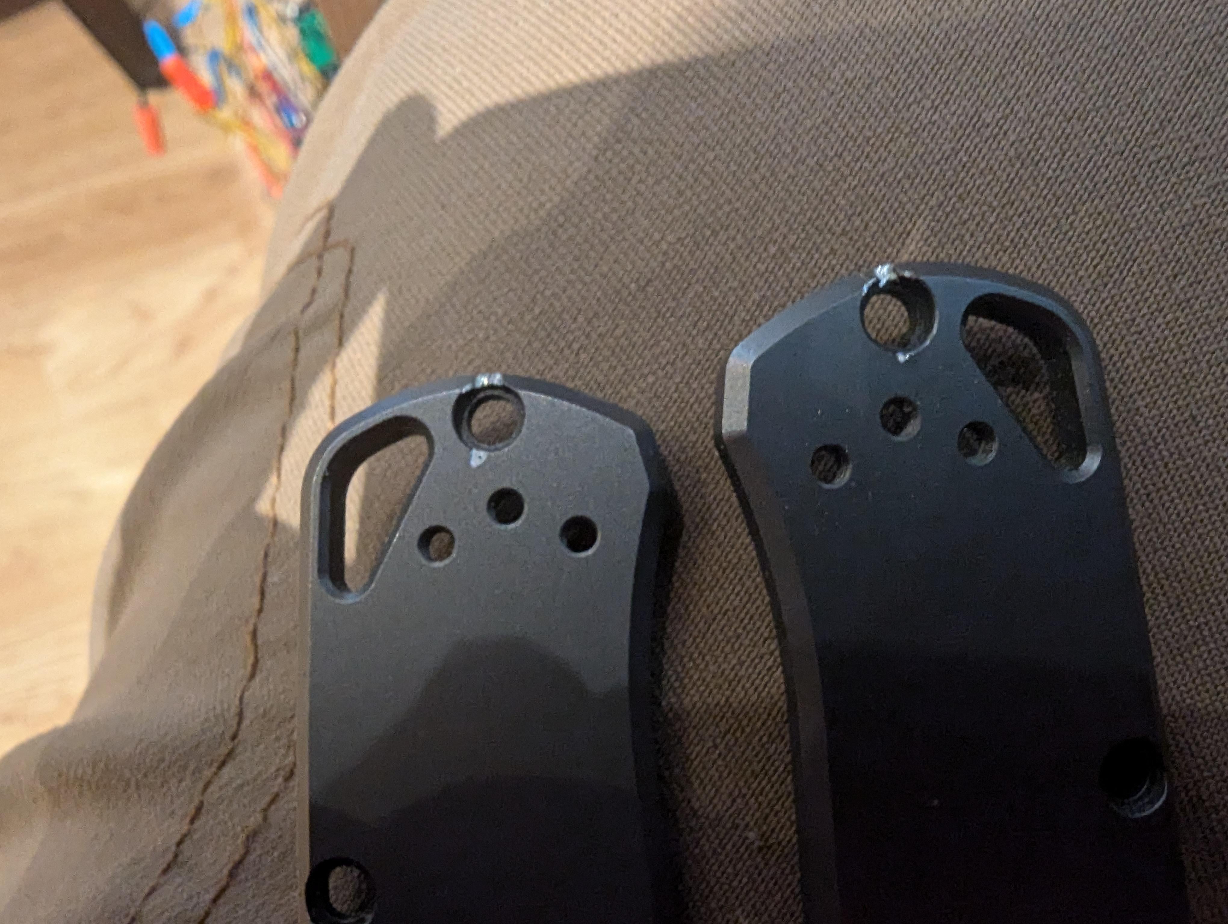 Stripped both screws completely round. Tried everything short of using a torch but figured they were too far gone. Got fed up and dremeled into them but knicked the knife on both scales.