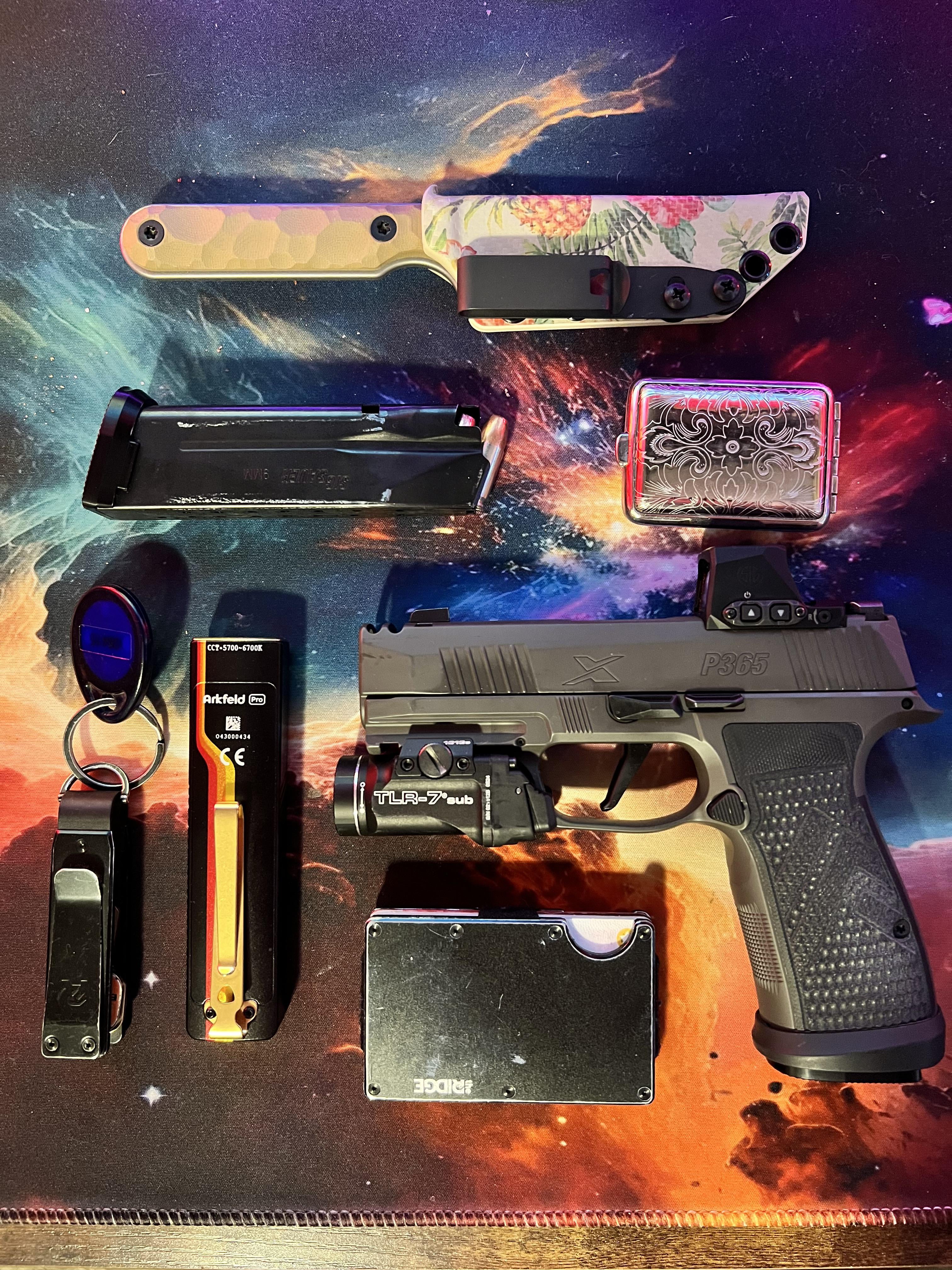 Sig Sauer P365 AXG Legion Olight Arkfeld Pro Ridge wallet and key holder Compliance Edge Copperhead Allergy medication Box 🤣