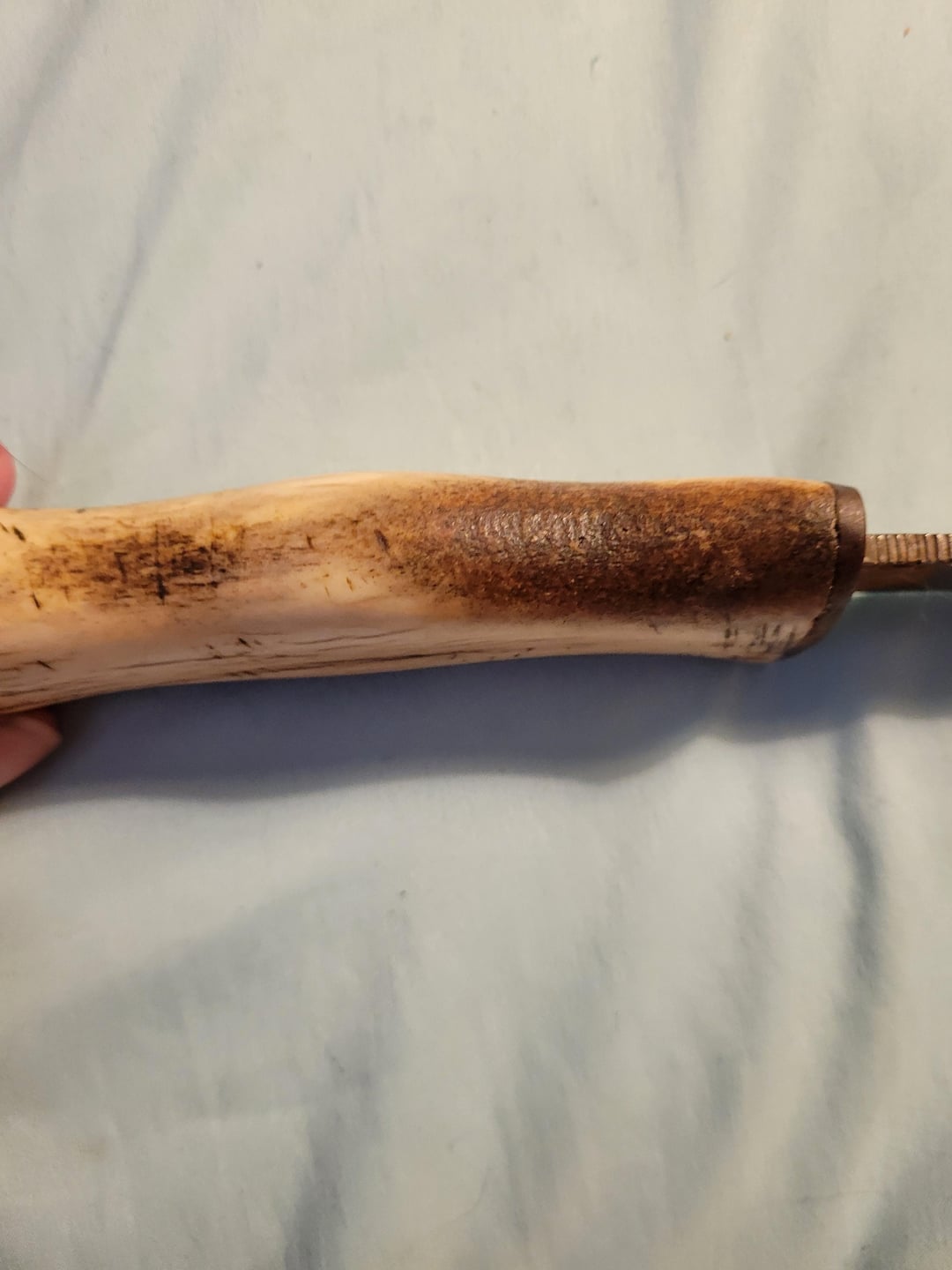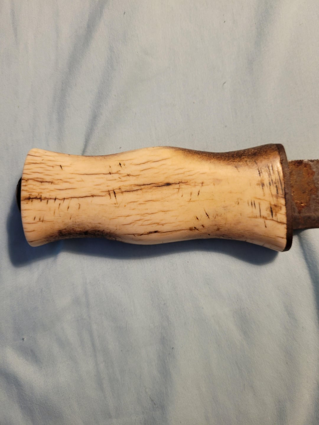 Looks like a Western blade with a homemade handle, whole thing could possibly be homemade.