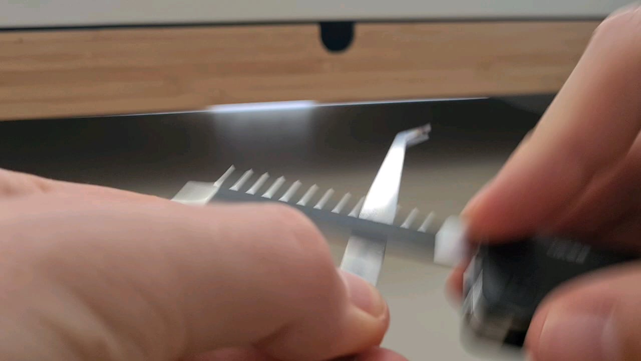 I sticked a 600 and 1000 grid sandpaper on each side of the saw with some double sided tape. I tried a 80 grid paper too, but that one doesn’t fit. I’ll try it with 120 grid paper when I’ll have some.