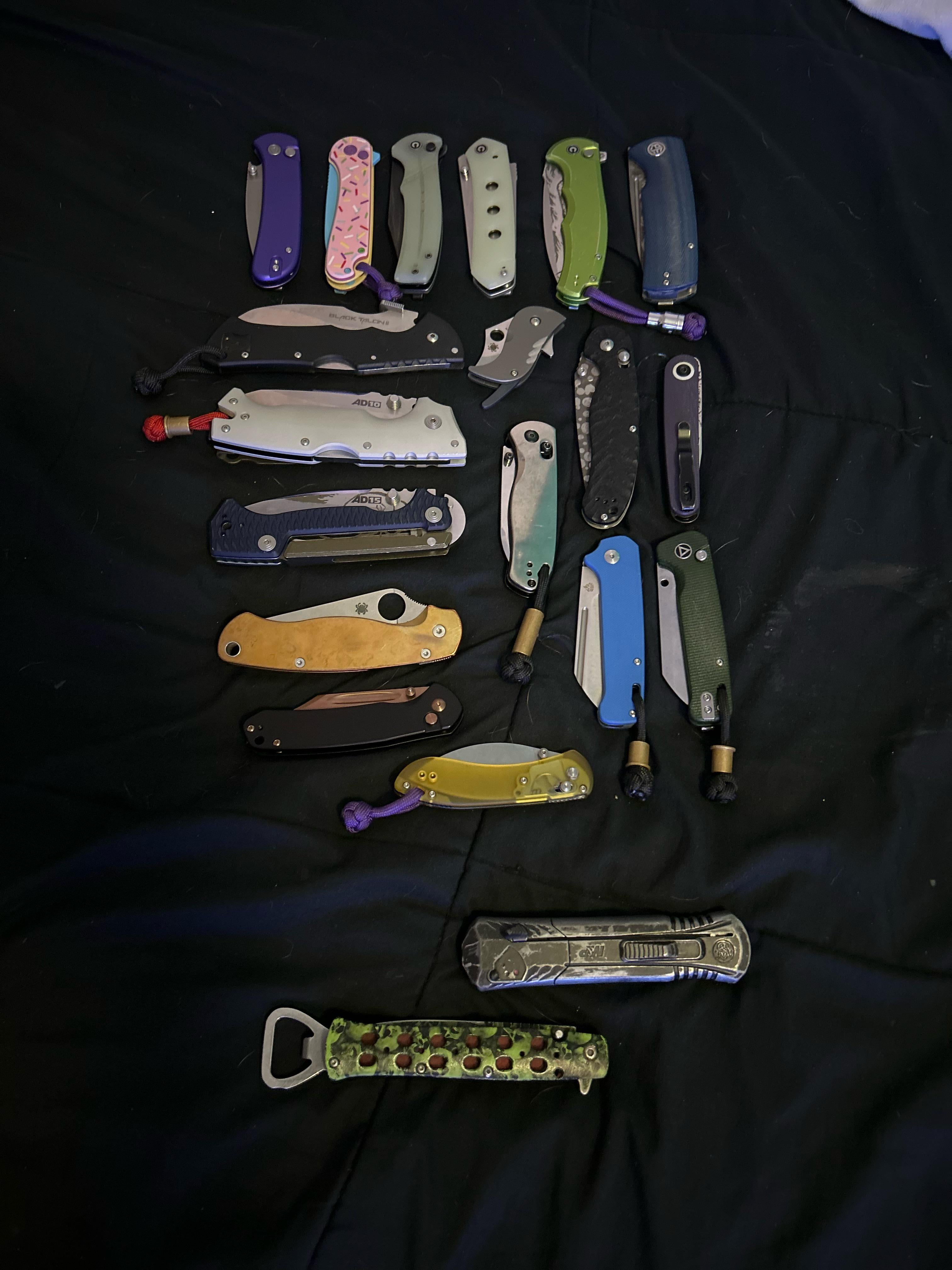 In KNIVES My whole knife collection July 3, 2024 The bottom 2 are what started everything when it came down to finding a knife that would work for everyday tasks and look good so these are all I’ve gotten so far some are modified but I love them allby Asphalt_lungZ KnifeKnives Prev Post My grooming and styling EDC July 3, 2024 Next Post Independence Day Eve Pocket Check!🇺🇸 July 3, 2024 Related Posts What is this blade marking for? January 16, 2026 Thoughts on Vosteed Xeno CPM Vanex January 16, 2026 This is the Way! January 16, 2026 1 Comment the-purple-chicken72 2 years ago Good stuff! How’s the action on the elementum dessert warrior? I have one on the way ◡̈.Also, what’s the purple one on the right second from the top?Write A CommentYou must be logged in to post a comment.