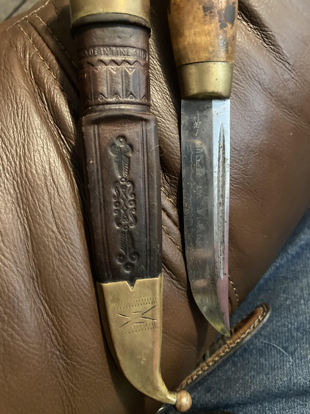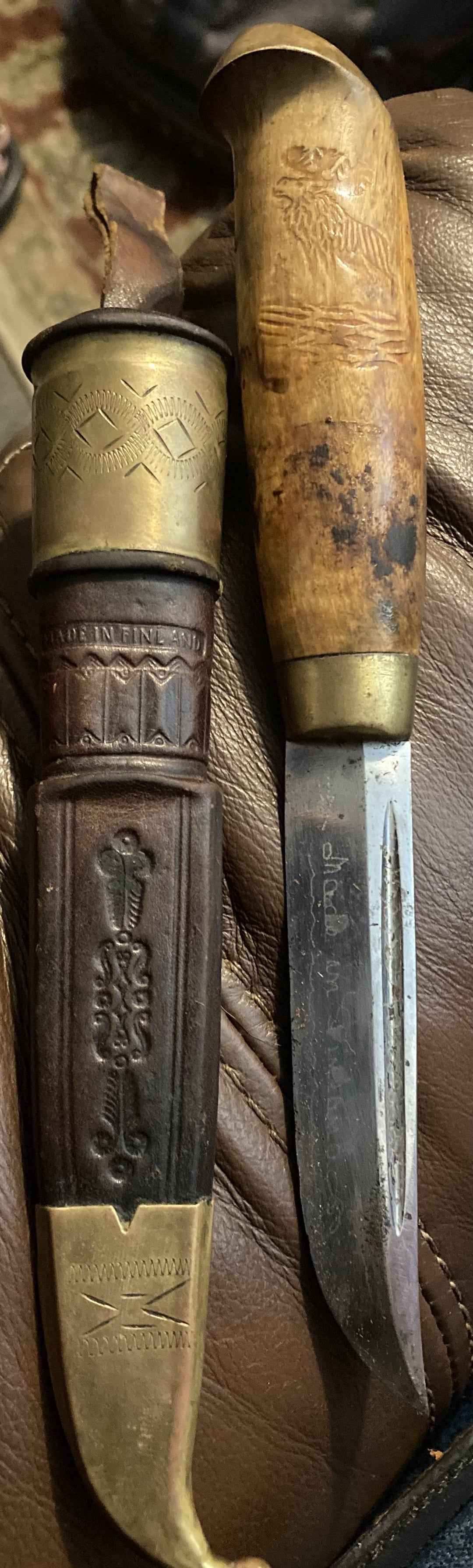 Can anyone help me identify this a bit? And help me figure out how to safely clean the dirt off it? I found a similar scabbard online that was made by lisakki Järvenpää Oy of Kauhava, Finland but unsure if the same maker! Thanks everyone! Also got it for $45usd so pretty good deal 😁