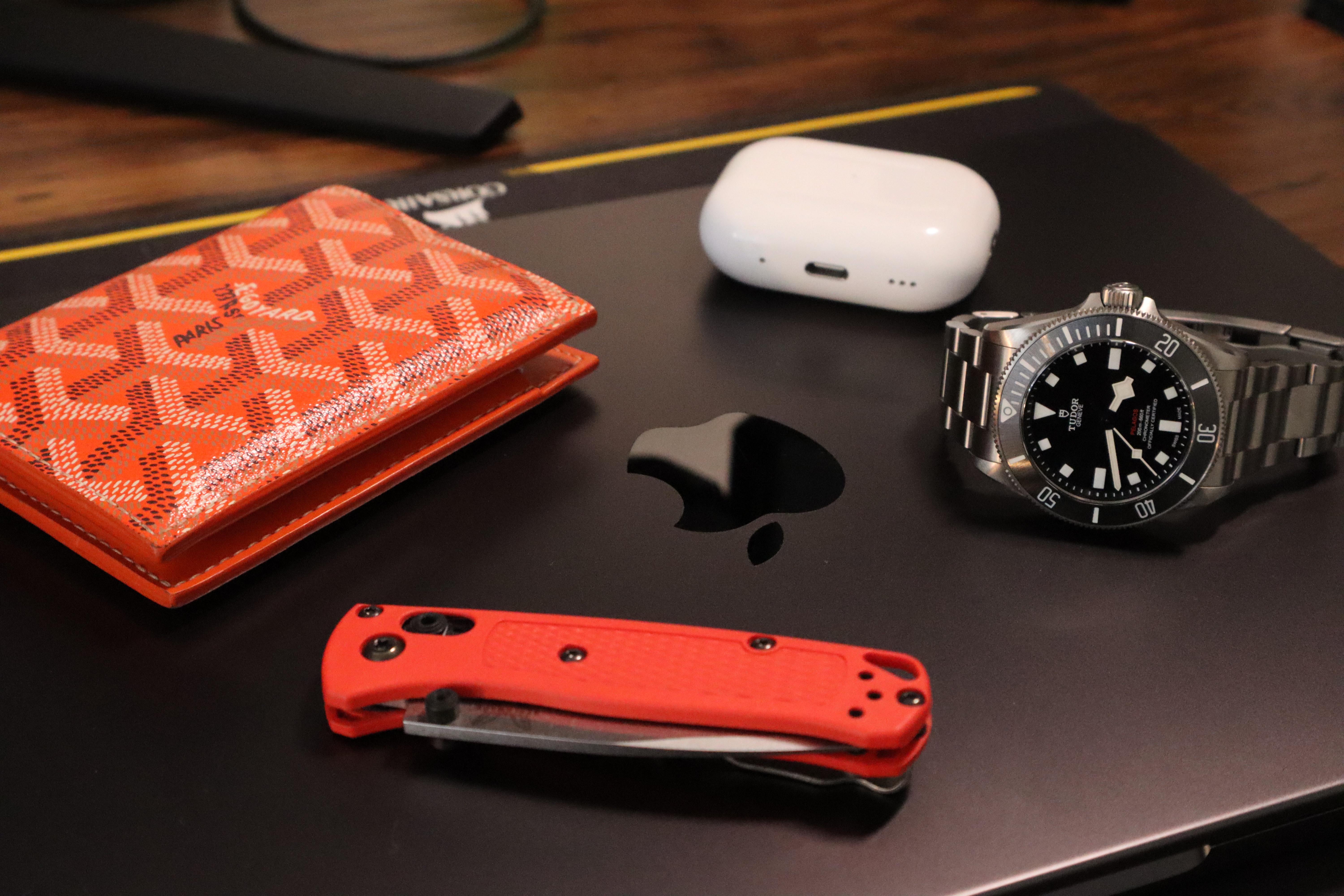Pelagos 39 was recently picked up for my bday, love how low key it is. Goyard wallet from Japan. Benchmade knife I received as a bday gift, I use it to cut open packages lol and keep in my pocket in case someone tries to steal my Pelagos… Airpods 👍🏼