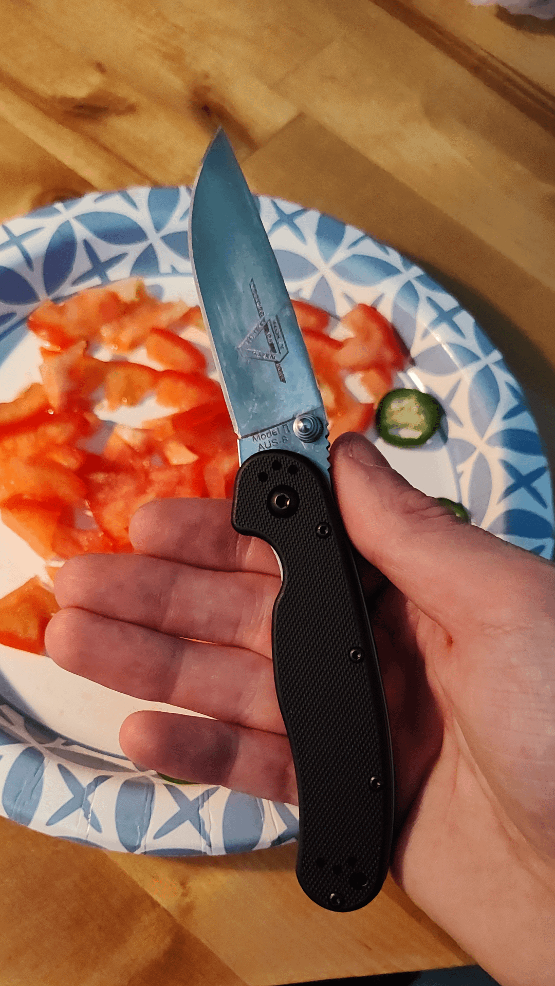 Lol, I was with at my grandparents house and said that I would cook, all of their knives were so dull that I used my pocket knife.