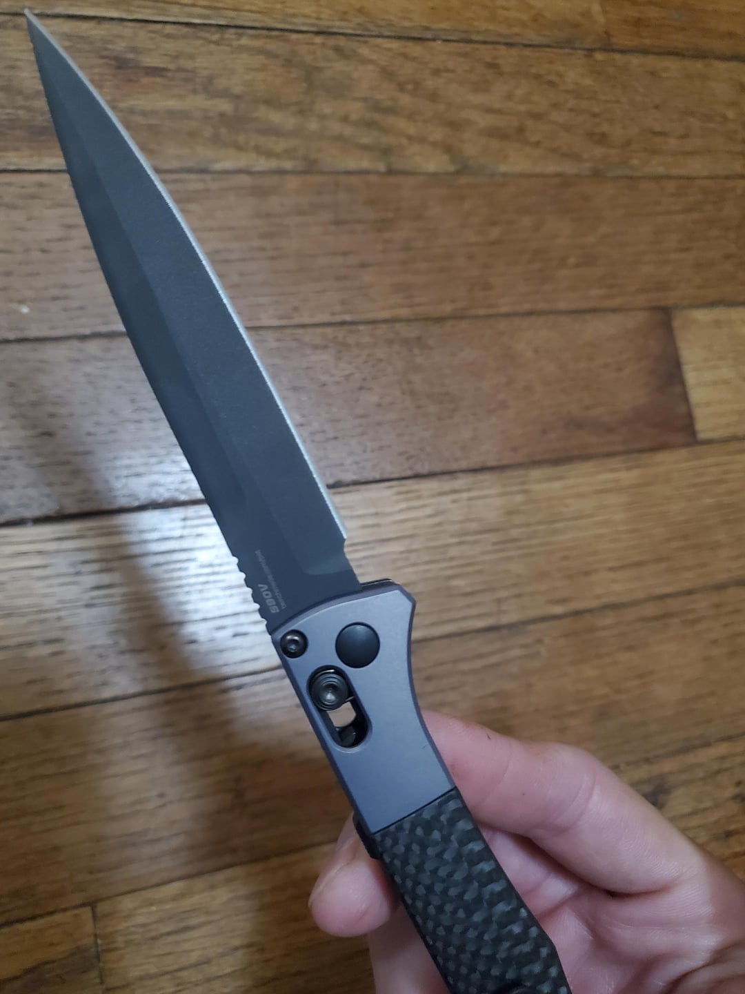 I will will definitely be using this knife, it is no safe queen. I want to see what it, and S90V is capable of. This is my first ever knife in S90V, and my first Benchmade since the house was robbed in 2018. I was skeptical on the price, but, to me at least, it was worth every penny. I have a love for the old school stiletto switchblades, and this knife is reminiscent of those.