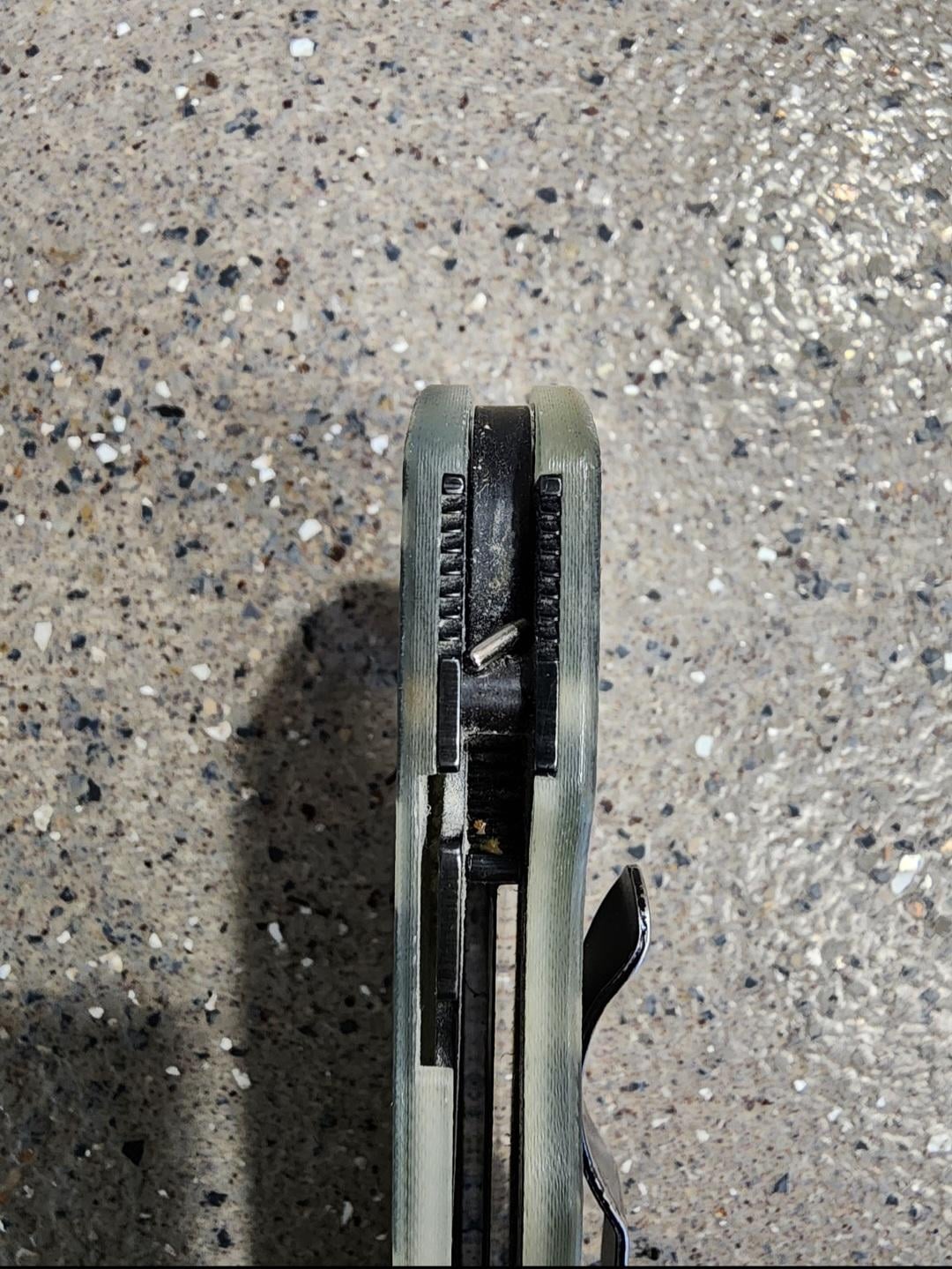 My knife was getting jammed up today and I looked and found this tiny magnetic metal rod jammed in the locking mechanism. Does anyone know if its part of the knife? I have no idea where it would have came from otherwise.