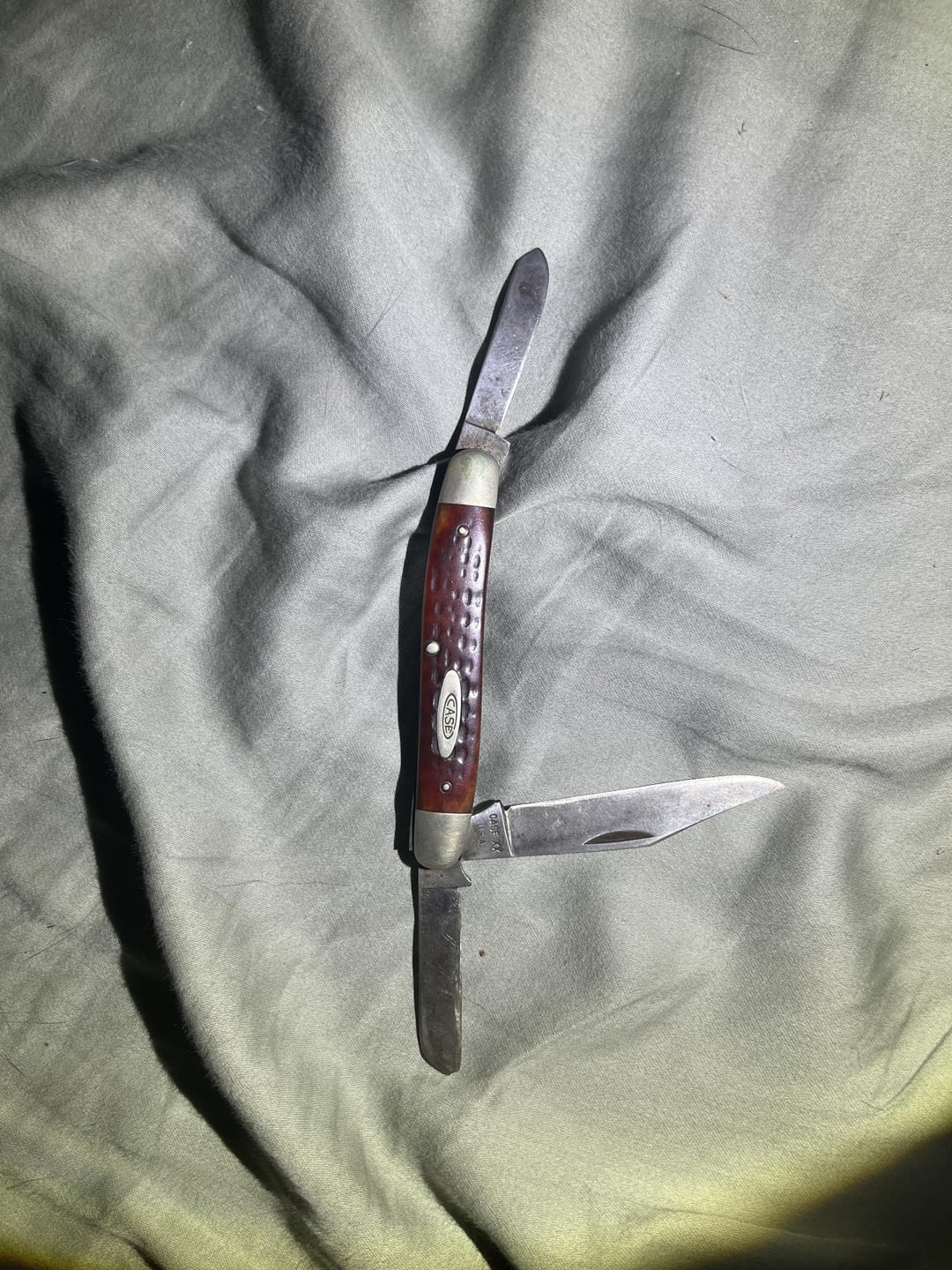 Knife given to me by my grandfather before he passed, belonged to his grandfather and his father. Blades have held up pretty well considering their age, probably around 60-70 years old but not entirely sure. Some corrosion and chipping but they still hold an edge well and fold in and out super smoothly. Though some of y’all might find it cool!