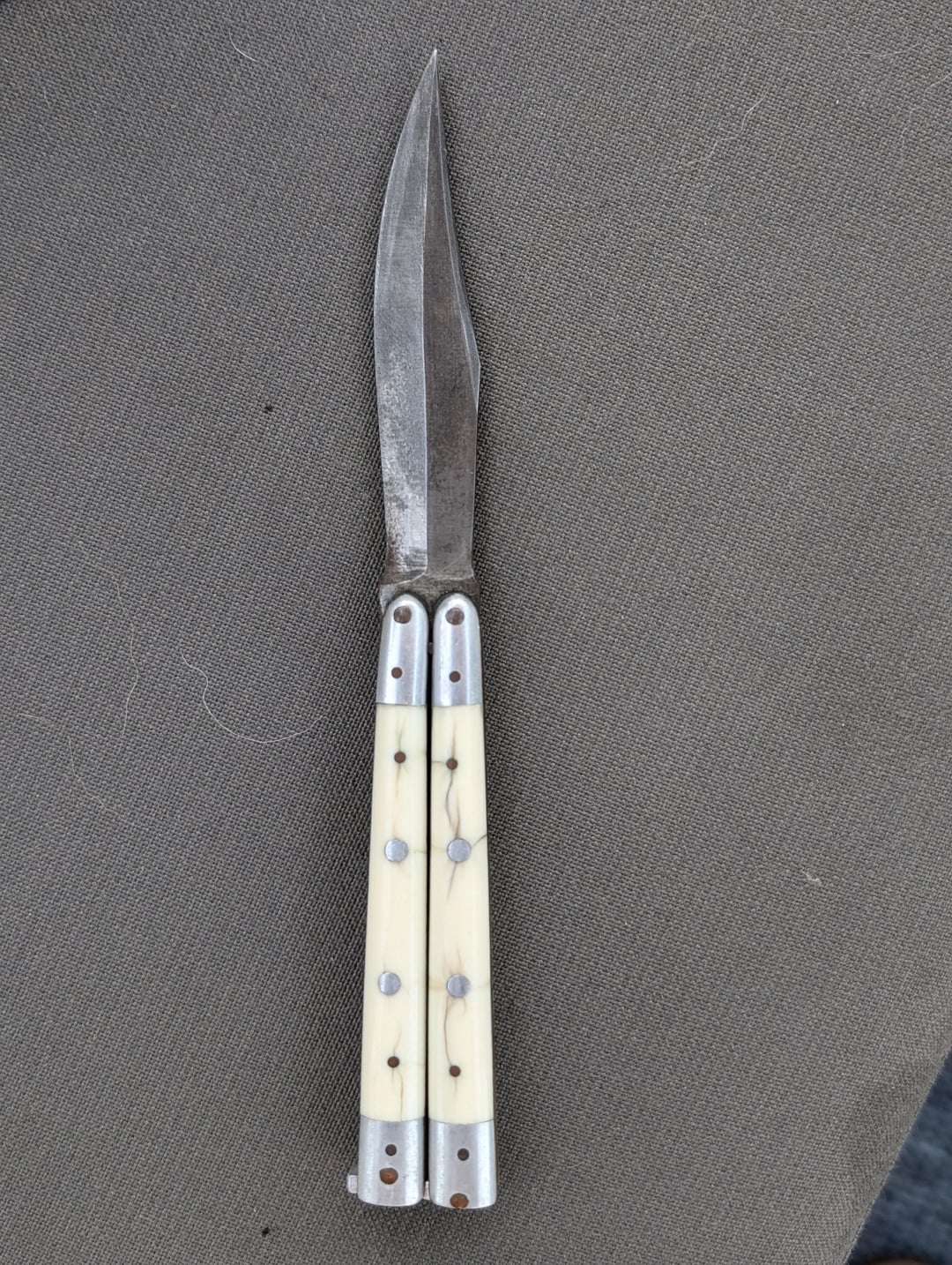 Long story short, as I’m not much of a knife collector I know nothing about this knife. Does anyone have any insight as to a make/model? Or, really just any insight about international Butterfly Knives in general that might provide any sort of information?