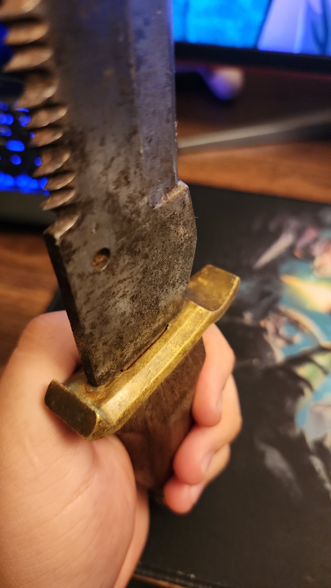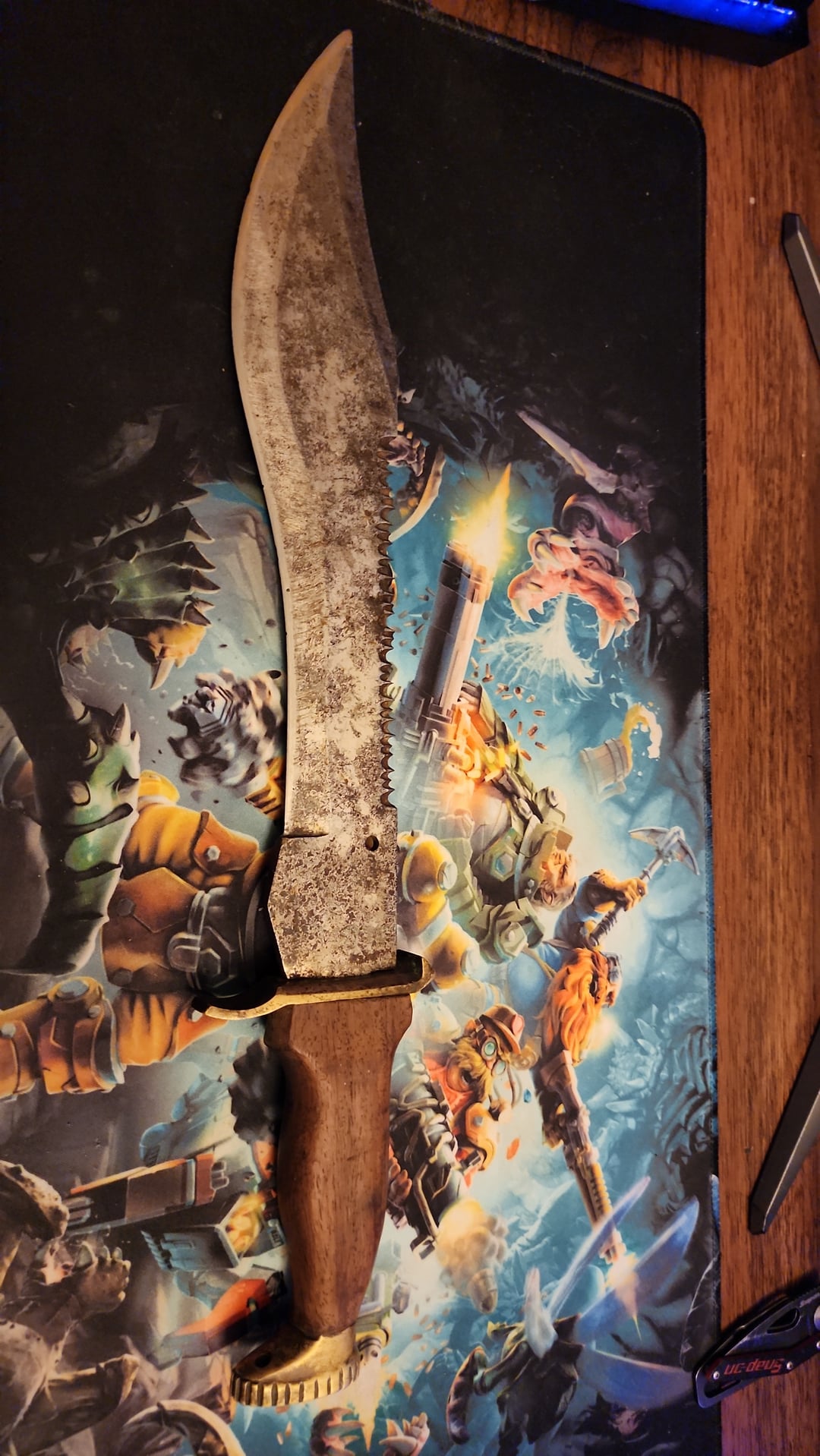 Grandmother had to move in with us as she has developed dementia. Found this next to her bed, presumably for intruders. She is Mexican, so it may be from there.It has no discernable identifying marks and may very well be custom made but if someone can id this thing I would be grateful. Comment or dm if you need additional pics or if you wanna play DRG.