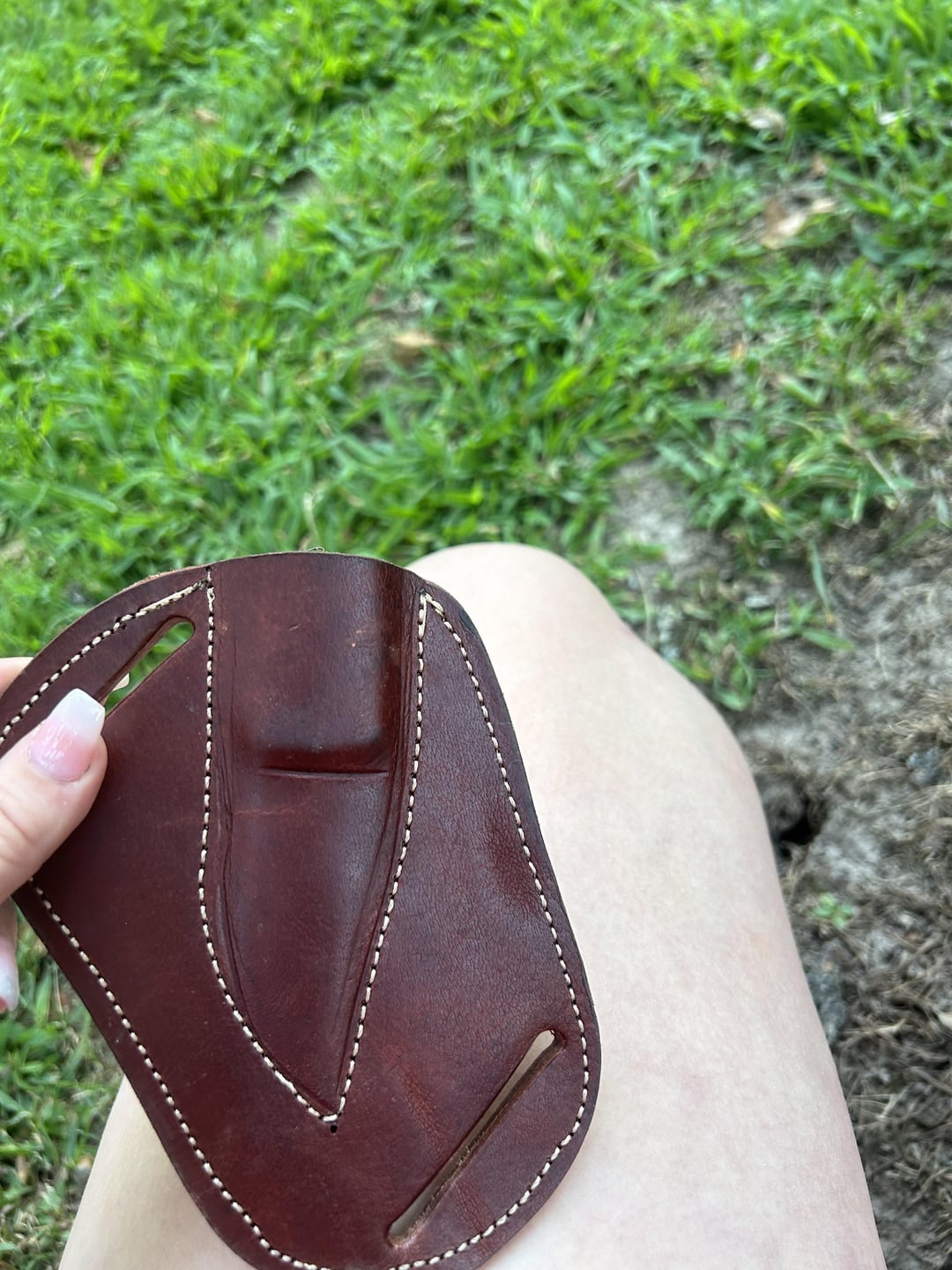 Sheath, and yea anything acidic will rust/patina steels with a high carbon content pretty quickly. If you don’t want the patina rinse with water and dry, I keep a coat of mineral oil on knives that get used regular for food, if not using it for food any oil will work.
