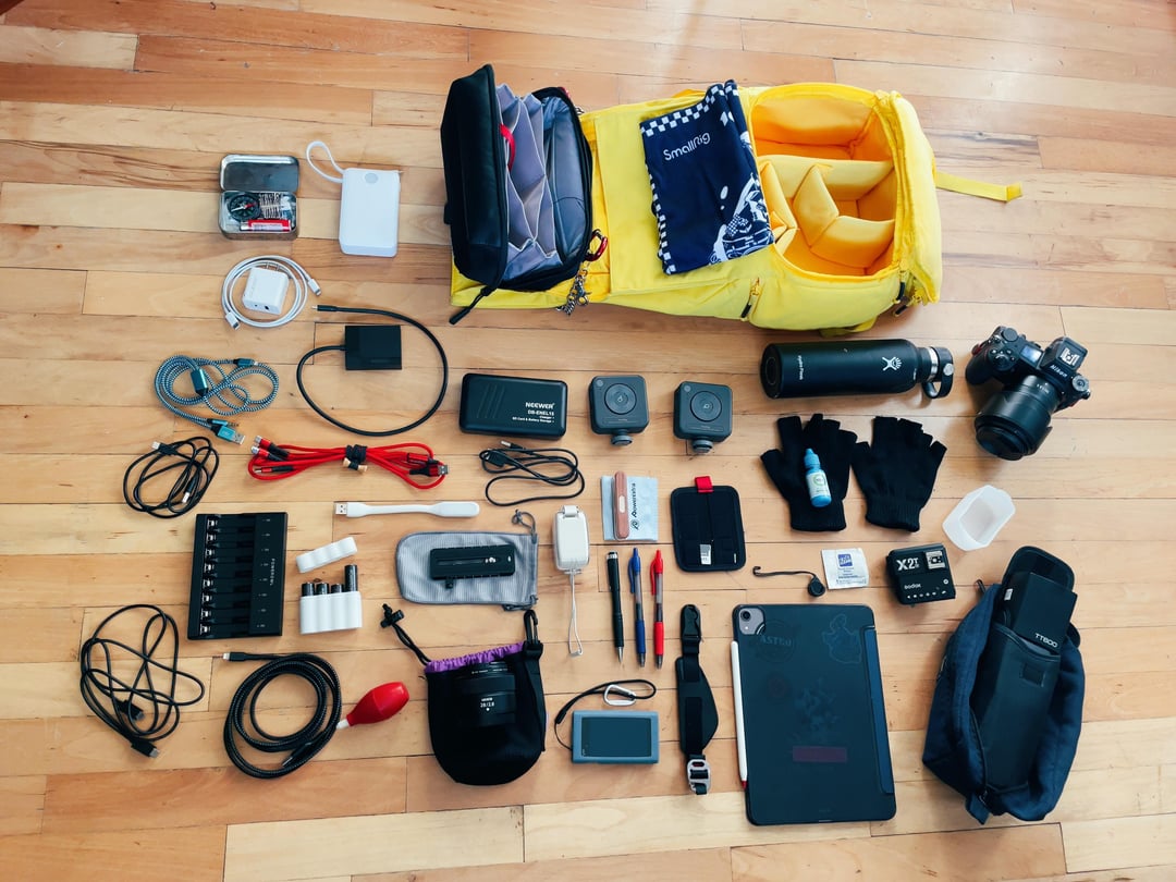 seeyatellite 1 year ago Brevitē Runner:* Nikon Z6ii (Nikii)* NIKKOR 50/1.8 S* NIKKOR 28/2.8* Godox TT600 flash* Godox X2T flash trigger* iPad Pro 11* Anker power bank 20,000mAh/22.5W* SmallRig Vibe P96 bicolor video light* Klipsch T5ii bluetooth earbuds* fingerless gloves* water bottle* Powerowl 8 AA/AAA usb c charger* custom Altoids Scout emergency kitTomtoc tech pouch:* NEEWER DB-ENEL15 Nikon battery charger/storage* AA batteries for flash* additional SmallRig Vibe P96* Ugreen usb c card reader* SmallRig camera tool* priceless Sony Walkman w/ a lifetime of collected music from friends and ancient sources(assorted writing utensils, contact eyedrops, charger and wires)