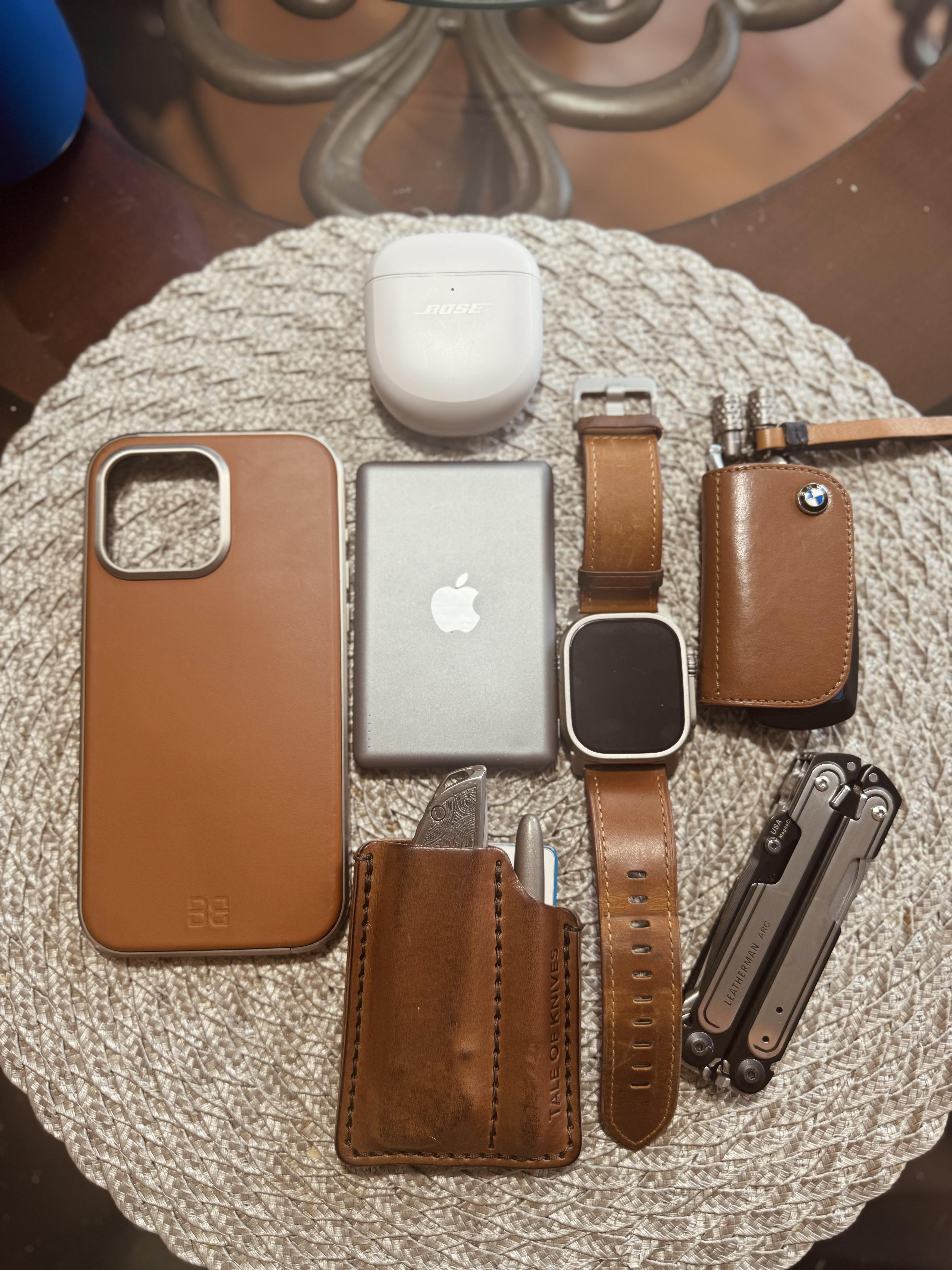 – iPhone 15 pro max in a Bandwerk Ti & leather case