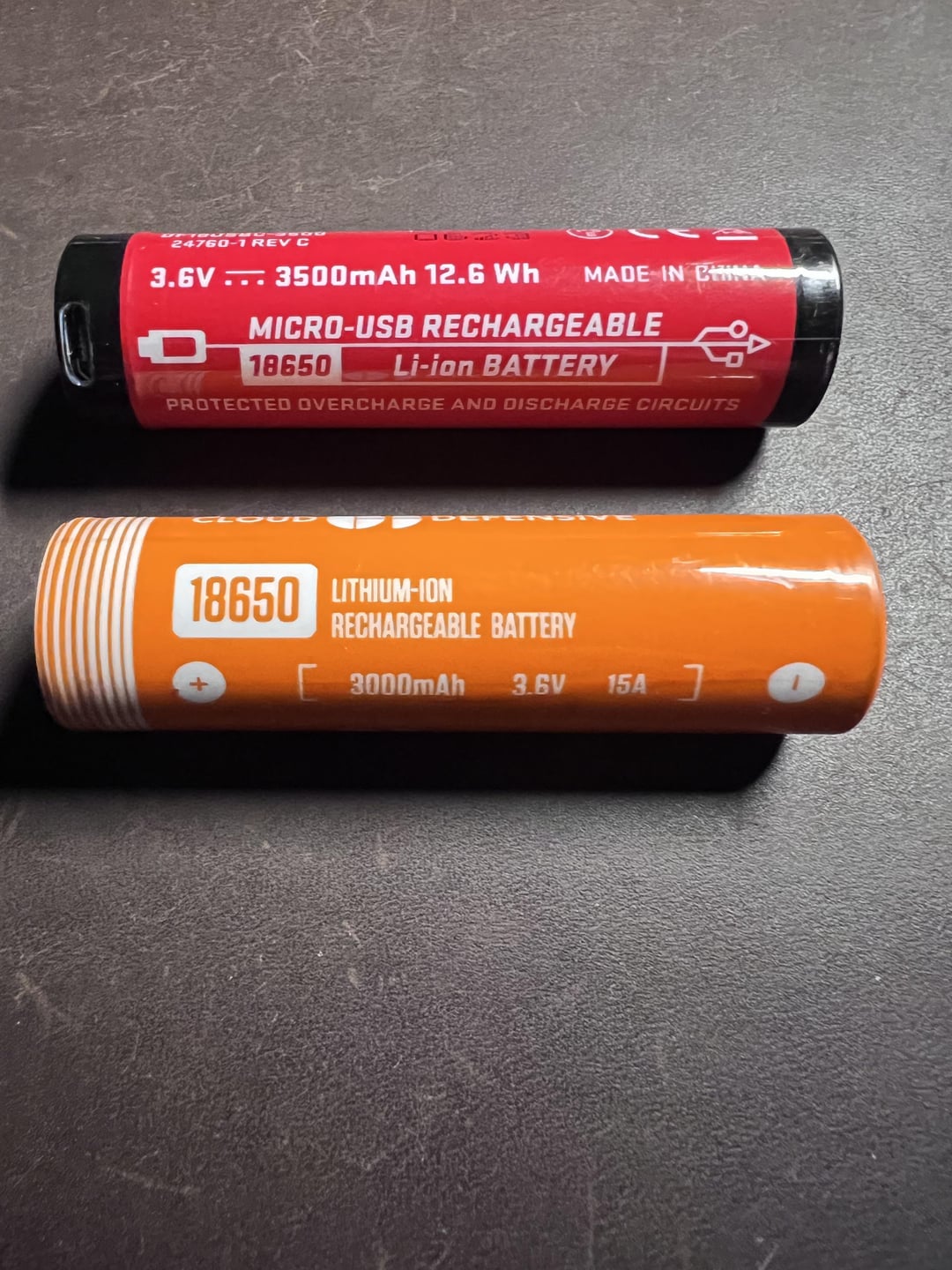 So I’ve got a Cloud Defensive MCH 2.0 High Candela, Dual Fuel with the 18650 body and it’s put a dent in the negative end of every 18650 I’ve put in it. The Olight and Cloud branded batteries went for a couple days and weeks respectively before there was a divot in the battery, the streamlight batteries (there is a second not pictured) were dented immediately and wouldn’t even function if either the tail cap or light head were threaded on more than half way. Despite the looks of the light, it hasn’t been dropped more than a couple times, and not from a height greater than 5ft nor on concrete or rock; the cosmetic damage is just scratches from it rubbing up against various things in pockets or bags. Does anyone have any suggestions on how to fix this, maybe a different battery size or brand and has anyone else had this problem or is it just my light?