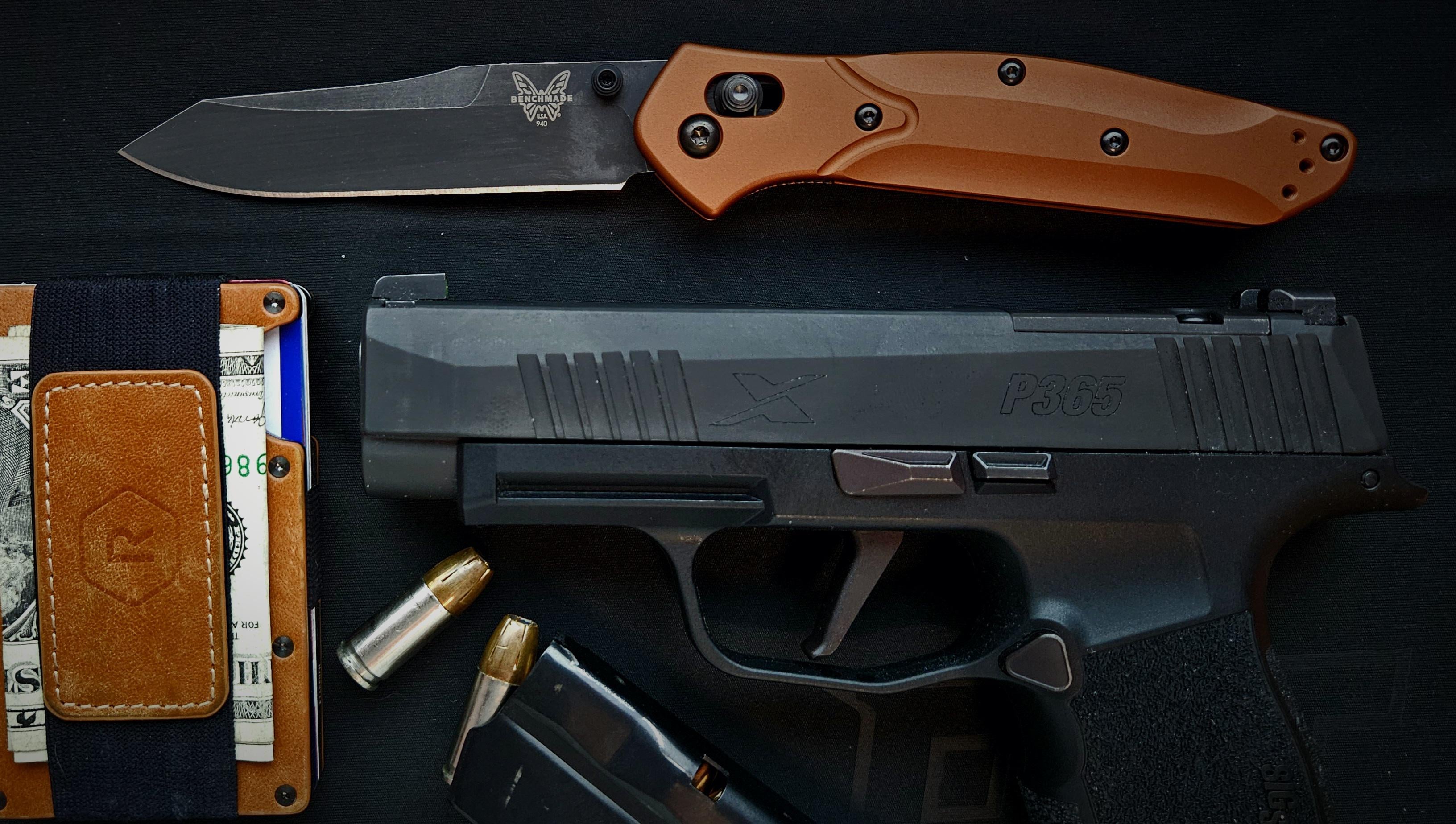 Benchmade 940 Osborne in MagnaCut SIG P365 XL Ridge Wallet in leather