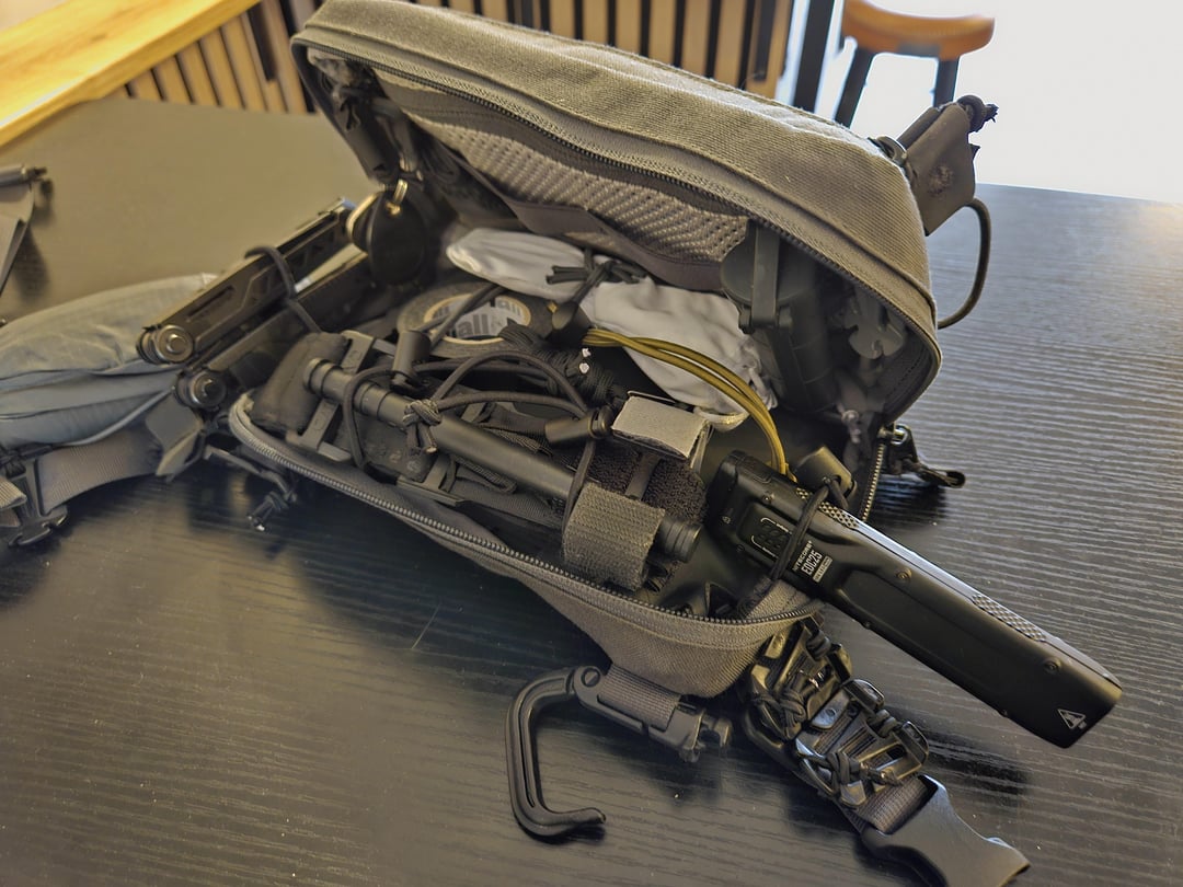 – Helikon Tex Foxhole Bag Wolf Grey (Additional Carrying Capacity) On the bag’s sling attached w/ ITW Web Dominators
