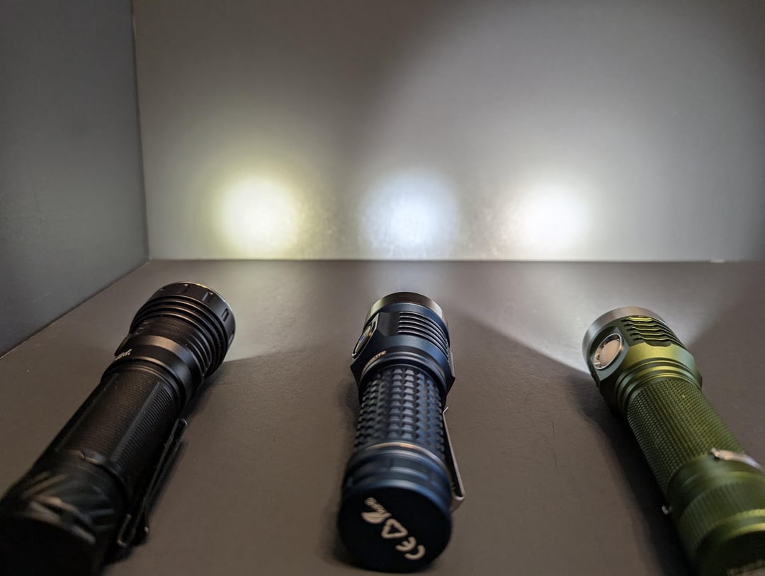 Just received my Fireflylite x1s xhp50.3 5000k. Before ordering I scoured the web looking for a size comparison to the Emisar d1k and couldn’t find one, so here it is (bonus Convoy m21h). The x1s is slightly taller, and the tailcap and bezel slightly bigger. They are basically identical. It’s that close. The x1s is definitely heavier.