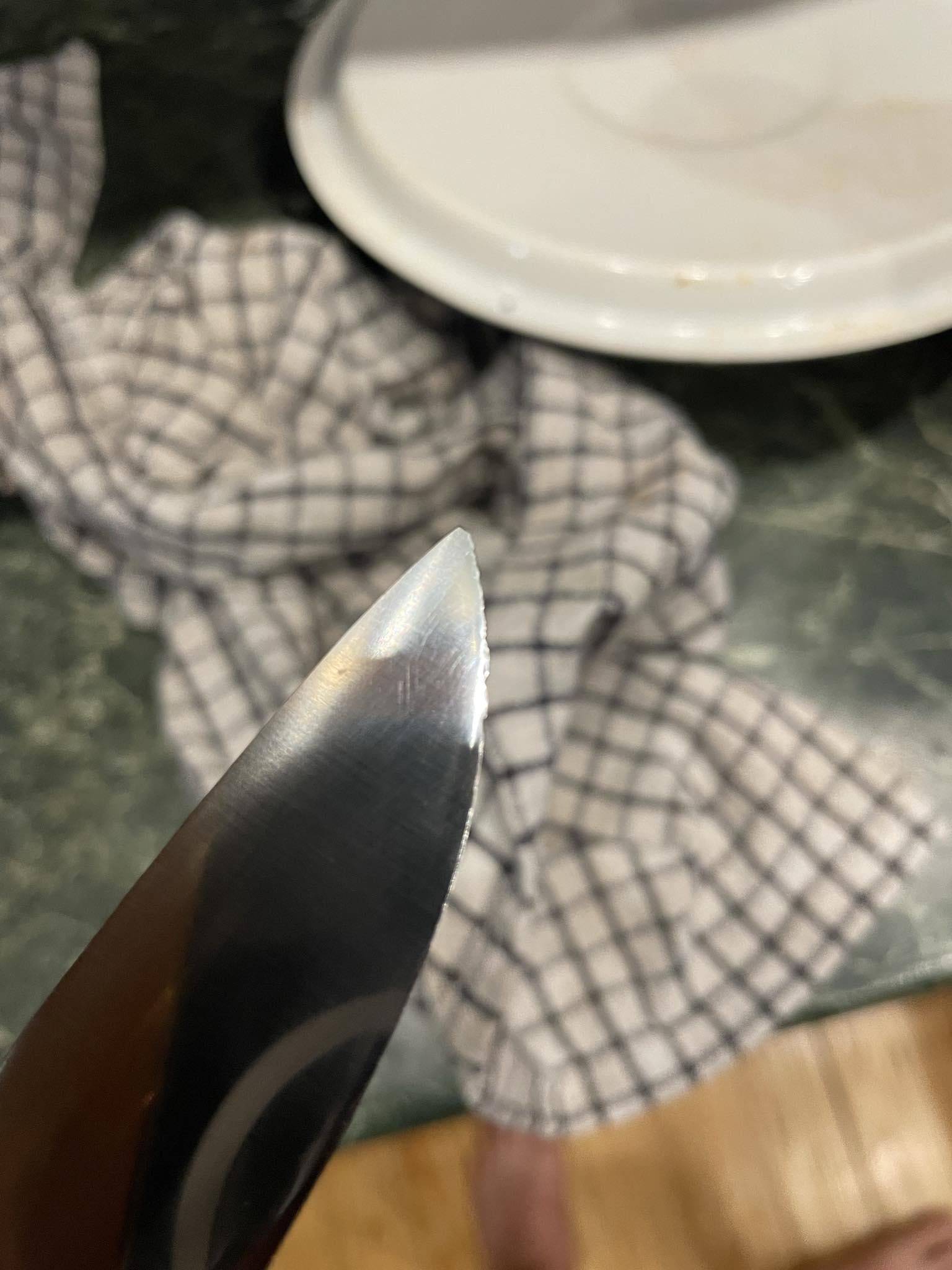 We baked pizza today, we didn’t have any baking paper, so we used an aluminium foil, and we used this knife for cutting, with the foil underneath the pizza.. is it possible that the 200°C foil meeting with the blade.. heat treated it somehow? Or someone in our household cut some iron nails with it and put it back to its place? The latter would seem pretty much surreal to me but this is high quality steel…