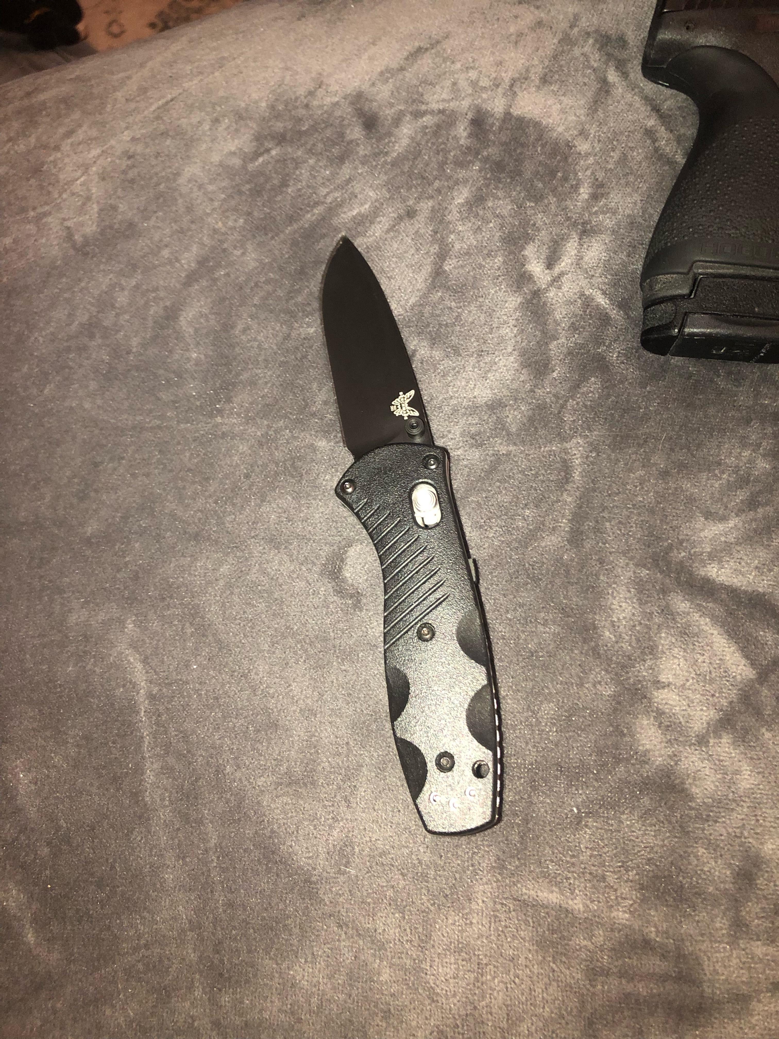 black coated mini barrage- definitely not worth the full price imo at $170 but for the $120 i paid on sale i’d say it’s 100% worth it, even being a benchmade. one of the few assisted knives i actually like as well. if the plunge grind/sharpening choil were done better it would be close to perfect