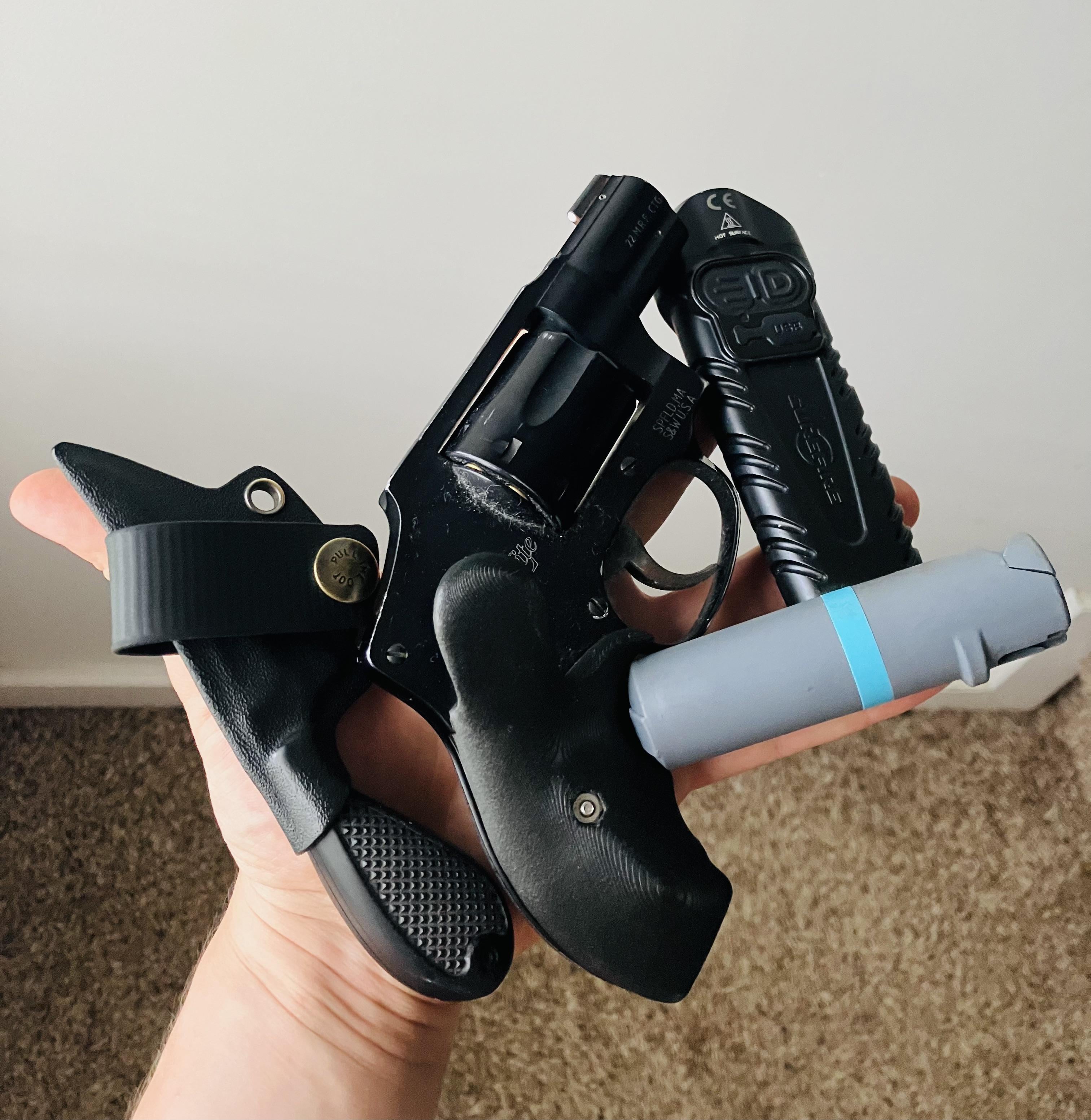 Shivworks Clinch Pick. POM. Surefire Stilletto Pro. S&W 351C with Hamre Forge grips.