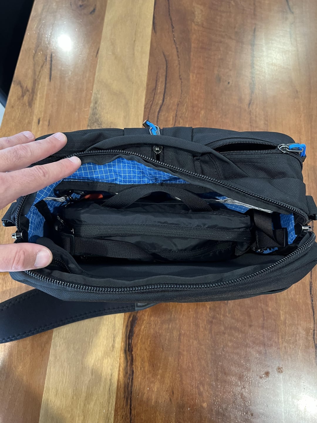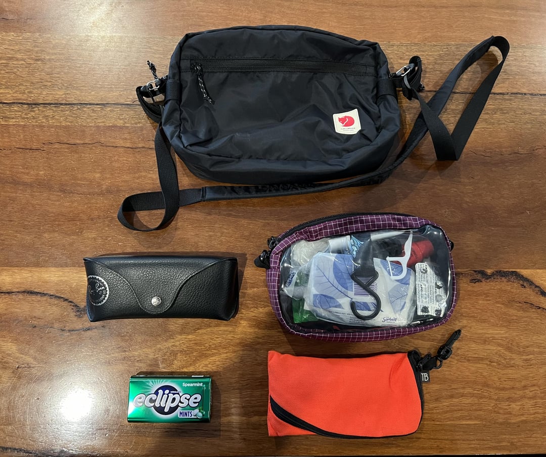 Fjallraven High Country cross body bag 3L capacity, which I keep in the main bag as a storage for smaller items and pouches, but also as a breakout type of bag if I need to carry a few items with me somewhere (like if I have to attend a meeting off-site that I don’t need my main bag, I’ll leave it at the office and just take this one with a few items in it).