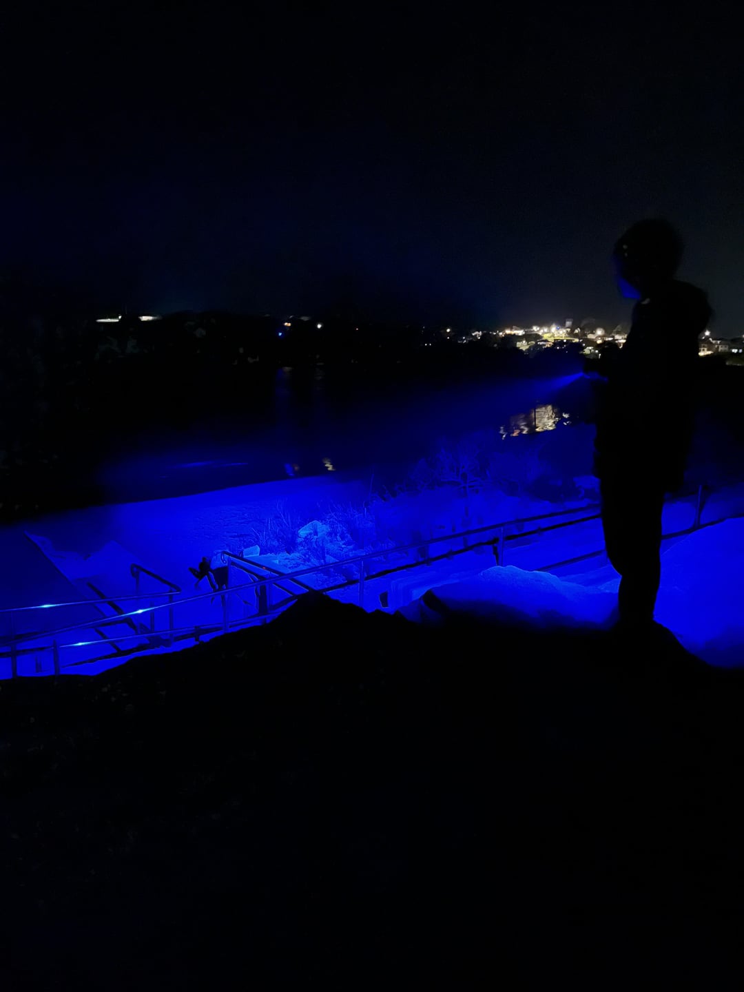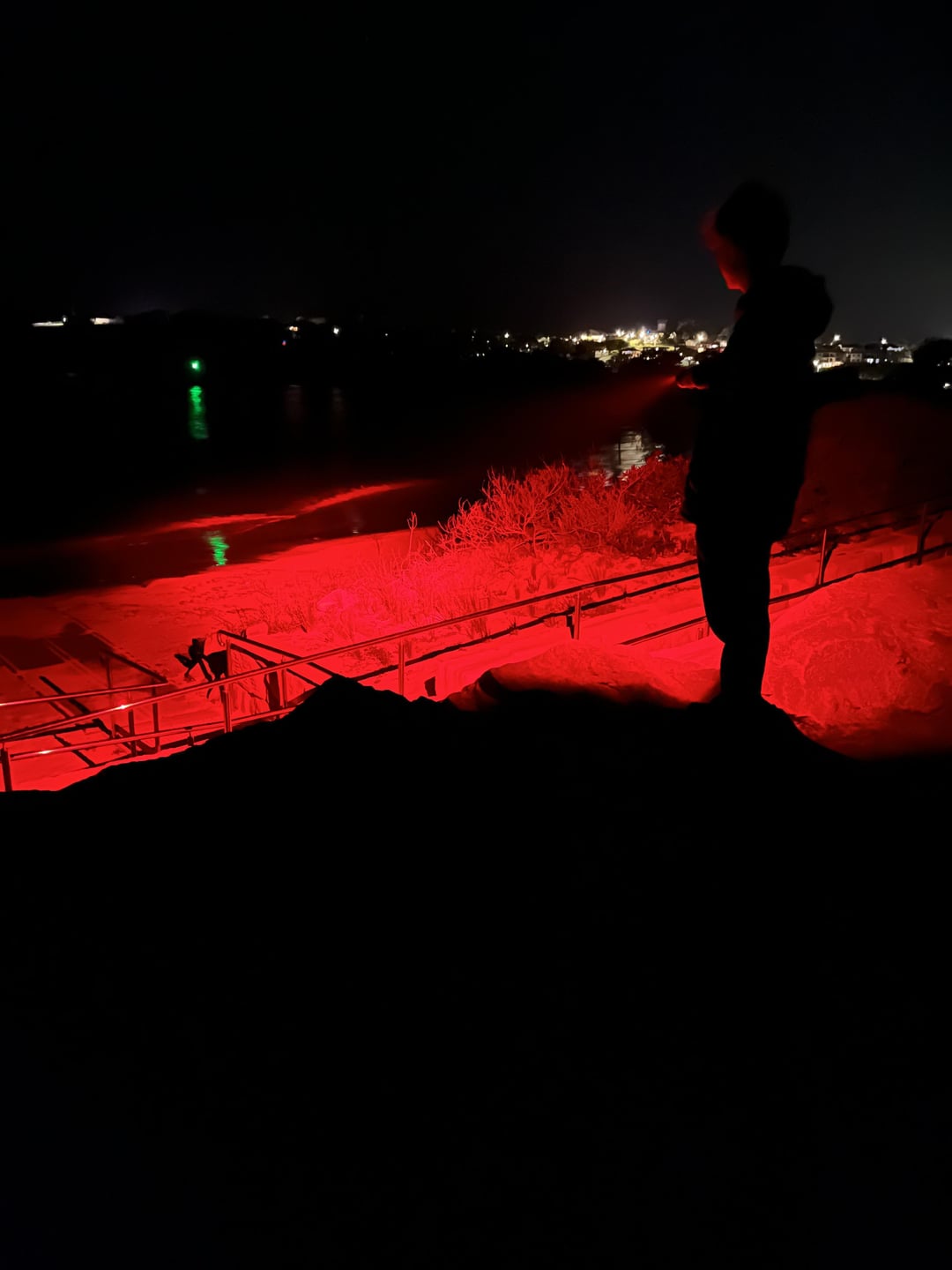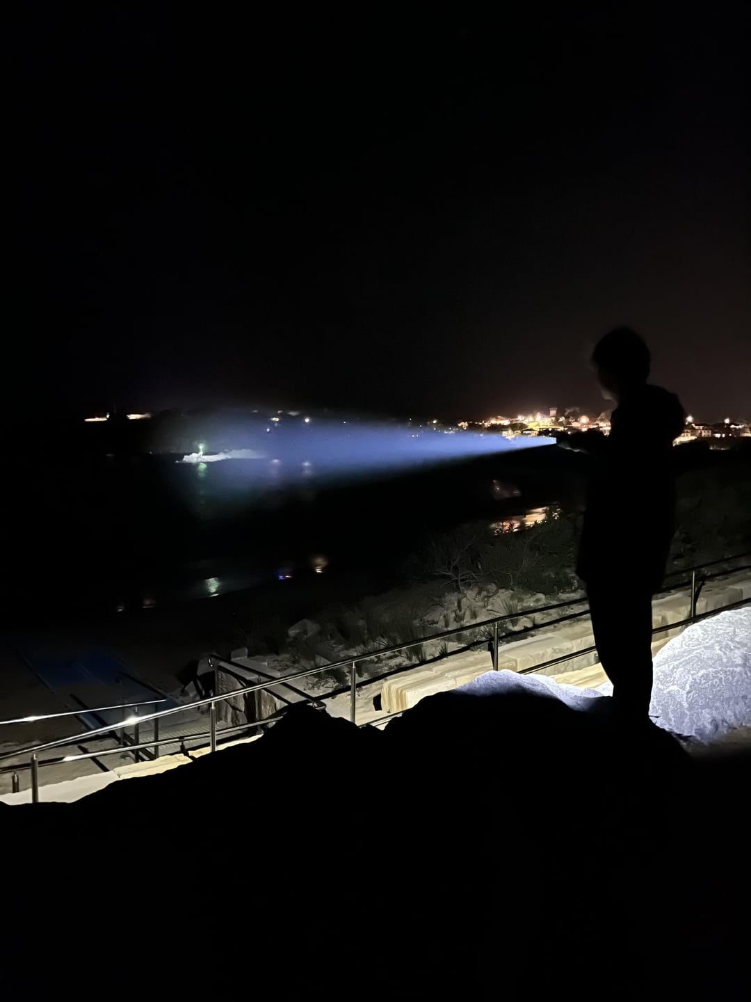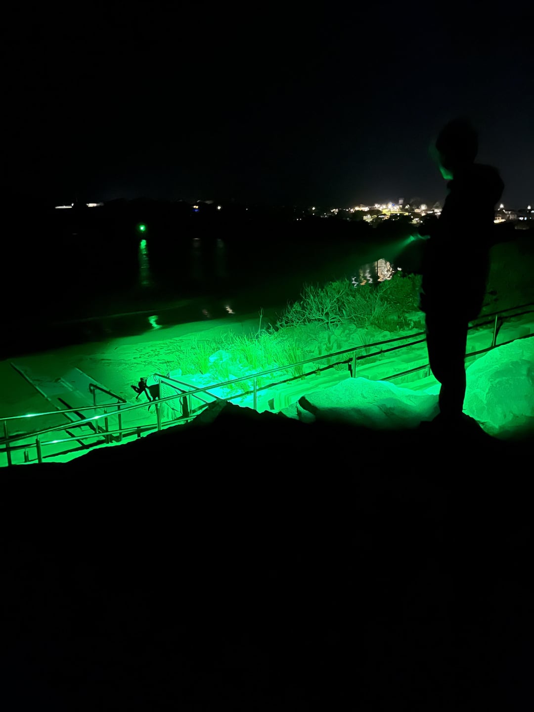 The channel marker I am lighting up is measured at 268 meters away and the trees are measured at 240 meters