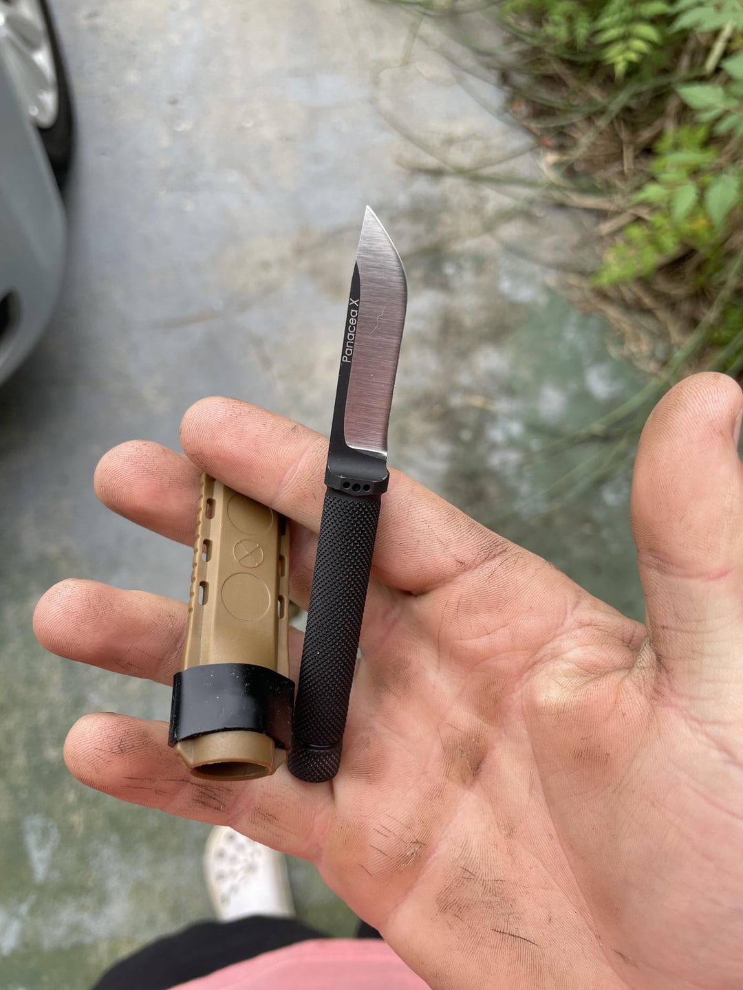 One of my favorite little fixed blades. I have about 15 feet of 6 pound braided fishing line, 3 small aberdeen hooks, and of course the ferro rod stuffed in the handle. It’s great for skinning, short woods walks, EDC, eating, whittling, fishing, and I use it occasionally for foraging my property with my wife.