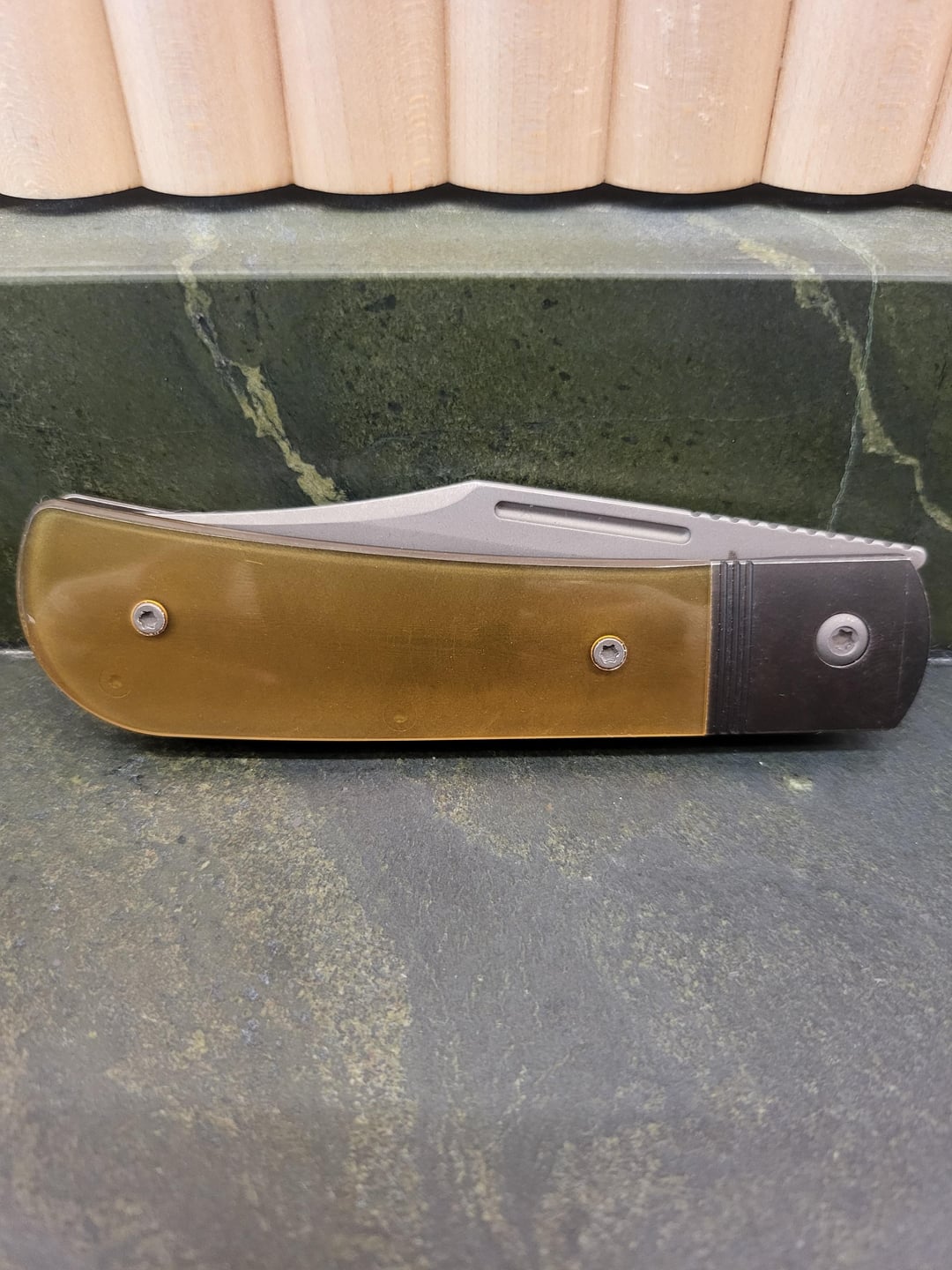 First Jack Wolf knife and first knife w/ ultem scales. Also, installed the clip plug. I like the sleeker nature of it without the clip. And I know ultem is pretty polarizing, but I dig it with the dark titanium behind it. Wdy think?