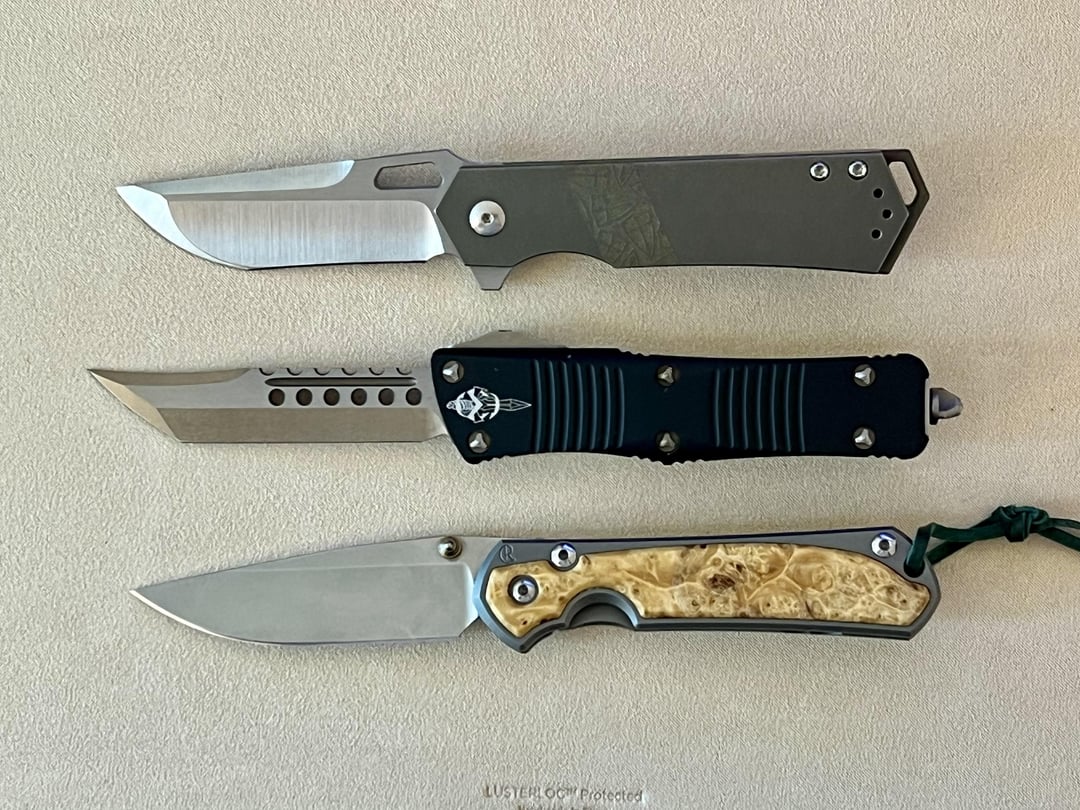 Troodon – for me, this is a much more practical size for EDC, comparable to the UTX 85. The Hellhound blade is the coolest thing on the planet…for everything except practical cutting…but OTFs are illegal to carry here anyway, and it handles Amazon packages just fine.