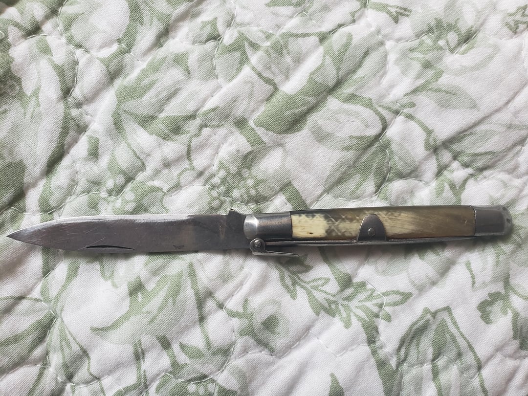 In KNIVES ID this knife? Grandfather recently passed away and he kept this with his dog tags and other things August 5, 2024 ID this knife? Grandfather recently passed away and he kept this with his dog tags and other things by graphitehead KnifeKnives Prev Post NKD August 5, 2024 Next Post TKell Tanto August 5, 2024 Related Posts Finally got my Spyderco Manix 2 in CPM Spy27. January 16, 2026 New knife haul from Denver Stock Show January 16, 2026 First posting. My knife collection! January 16, 2026 1 Comment Better_Island_4119 1 year ago I’m not 100%, buy it looks a lot like a Spanish Navaja knifeWrite A CommentYou must be logged in to post a comment.