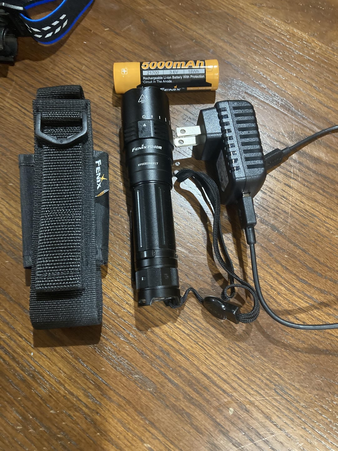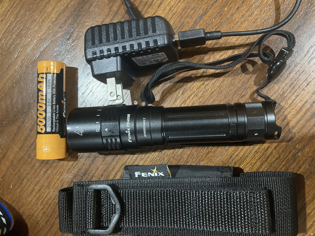 – Fenix PD40R, battery and accessories