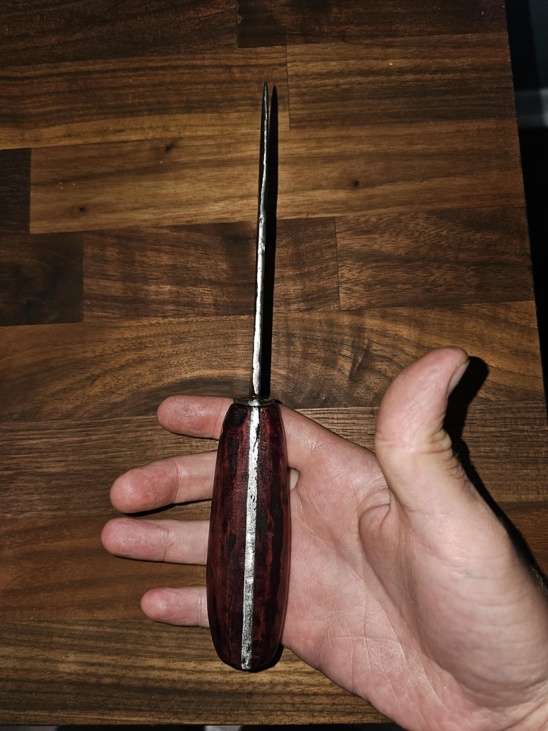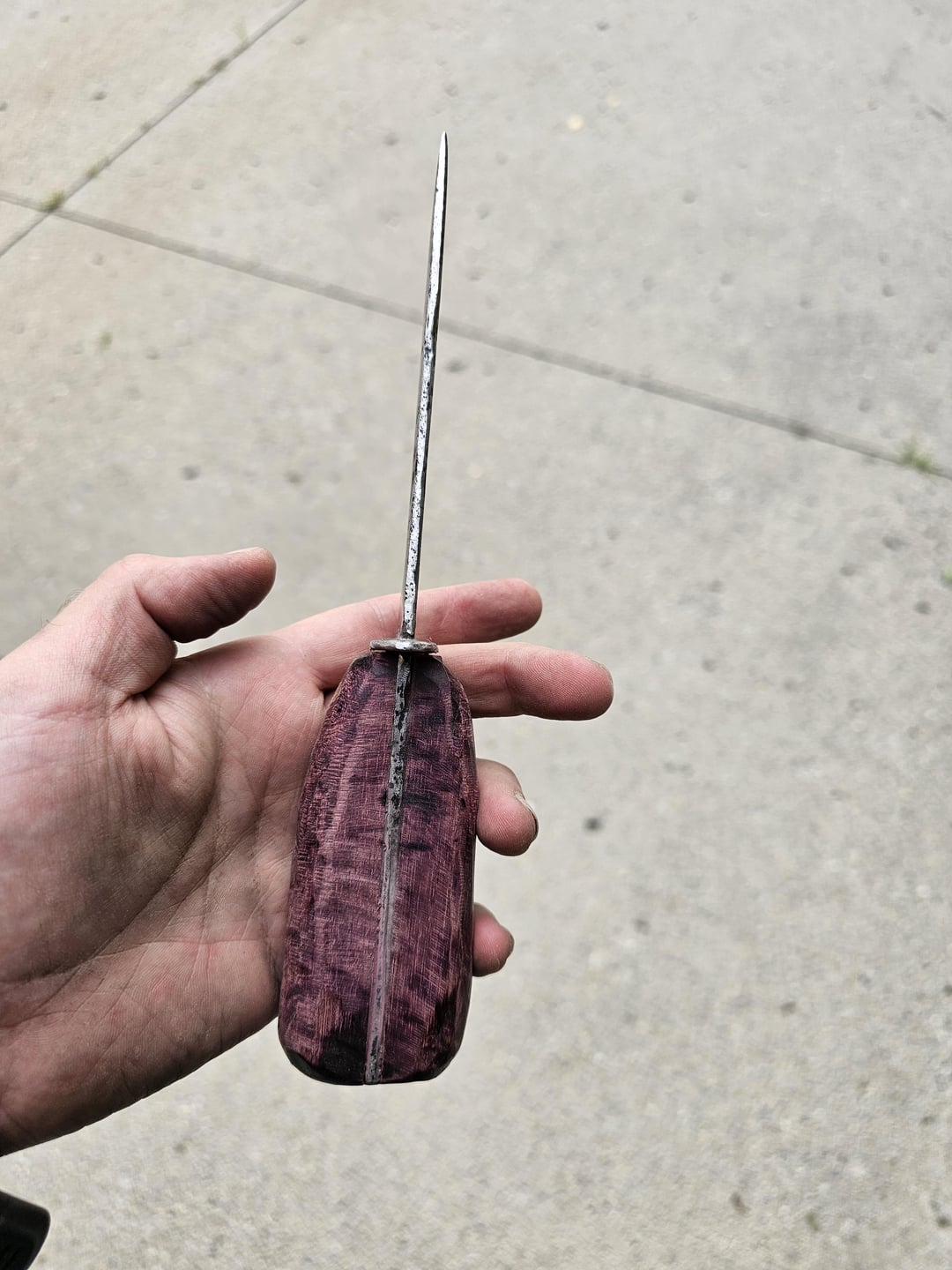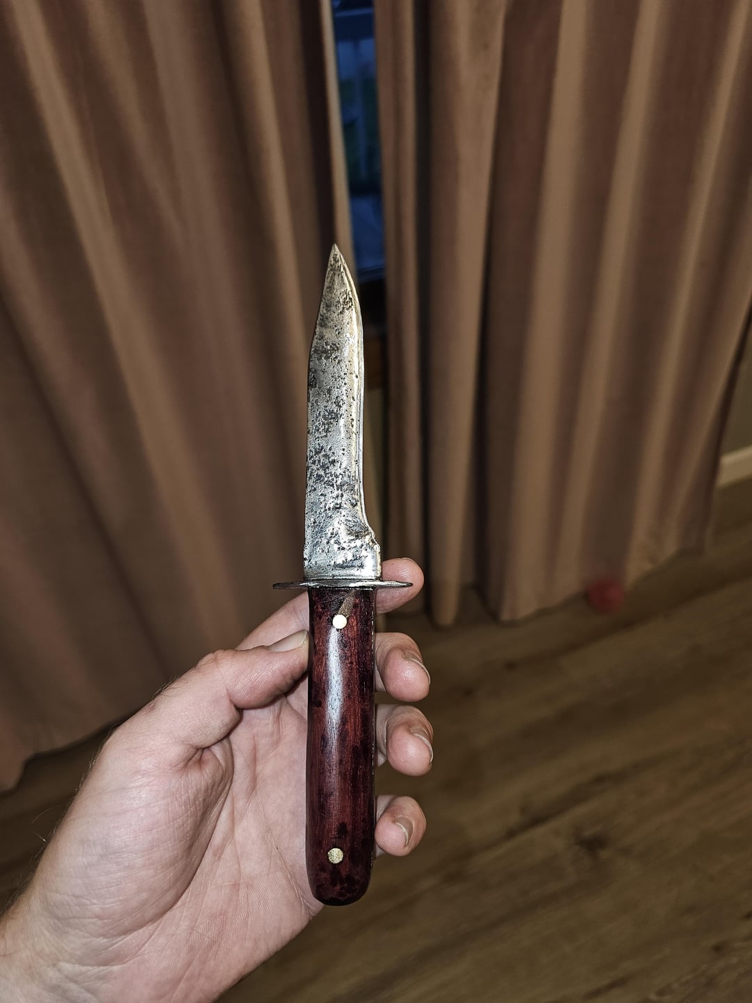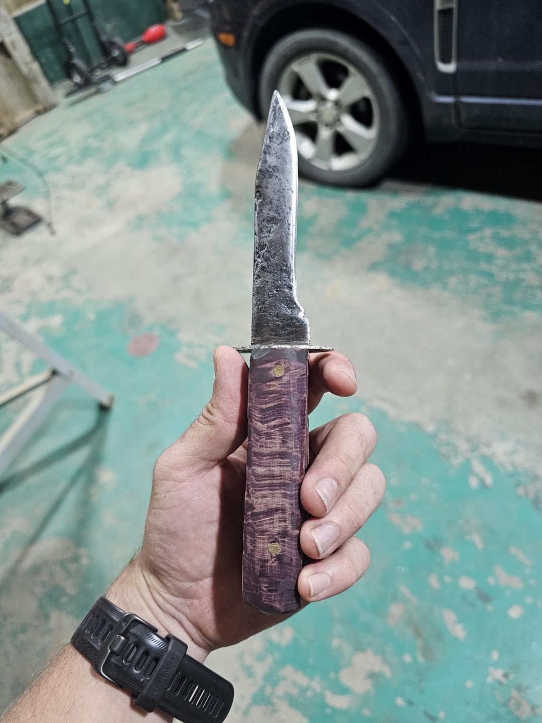 Intend to use it as a camp knife. I shaped the handle to fit my hand in the grip I’d use for cutting rope and making feathersticks. Its pretty uncomfortable in a traditional grip to be honest. I don’t have any kids of my own, so I intend right now to give it to my 1 year old nephew, to do what he wants with when he graduates high school 🙂