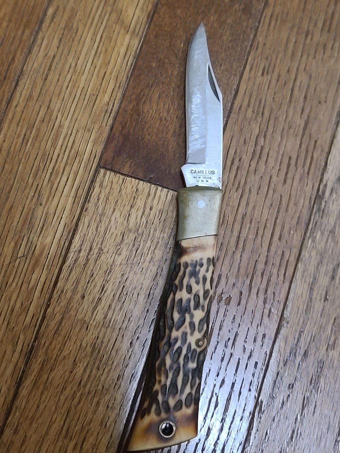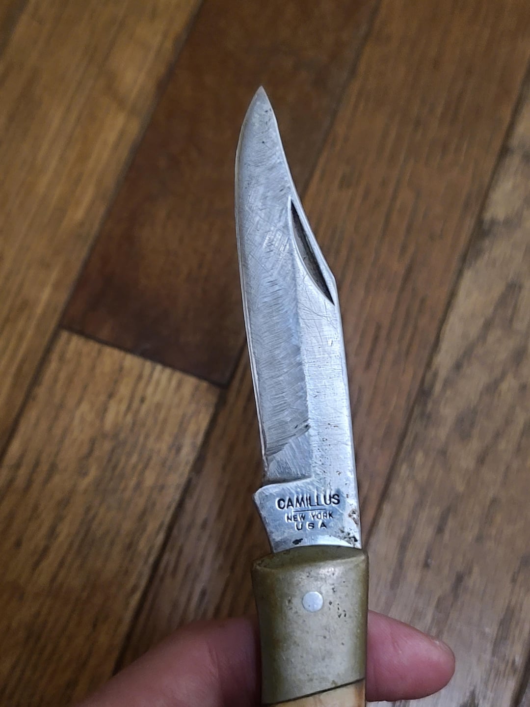 Anyone have any info on this slip joint knife? It is a Camillus, made in New York USA. I have no idea the age or anything. I have not touched the blade with any sharpening. This is the condition it came in. Grandfather gave it to me.