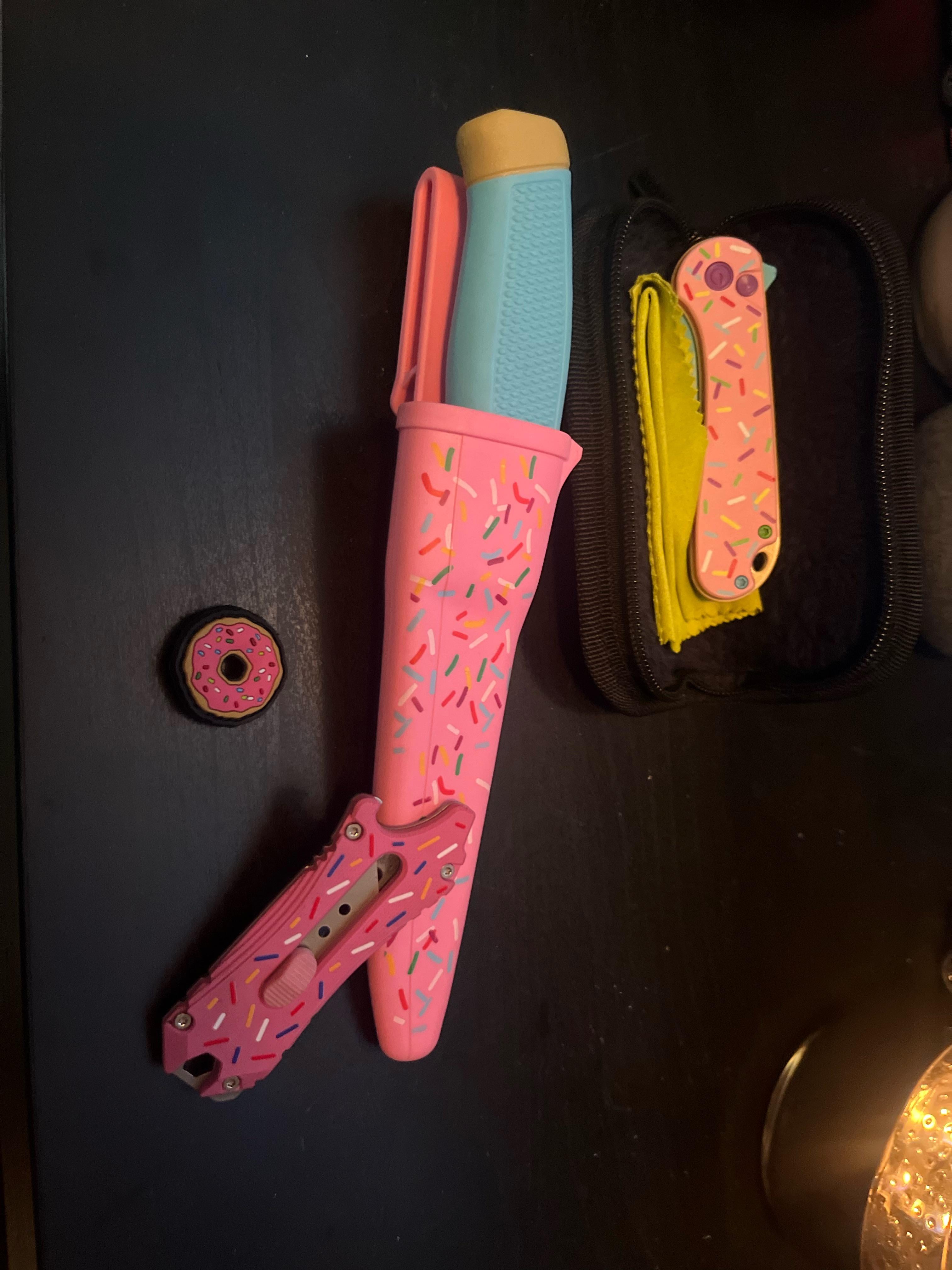 Slowly piecing together my dessert warrior collection. Just picked up the little Oknife box opener. Is this an official dessert warrior or just a “donut” pattern.