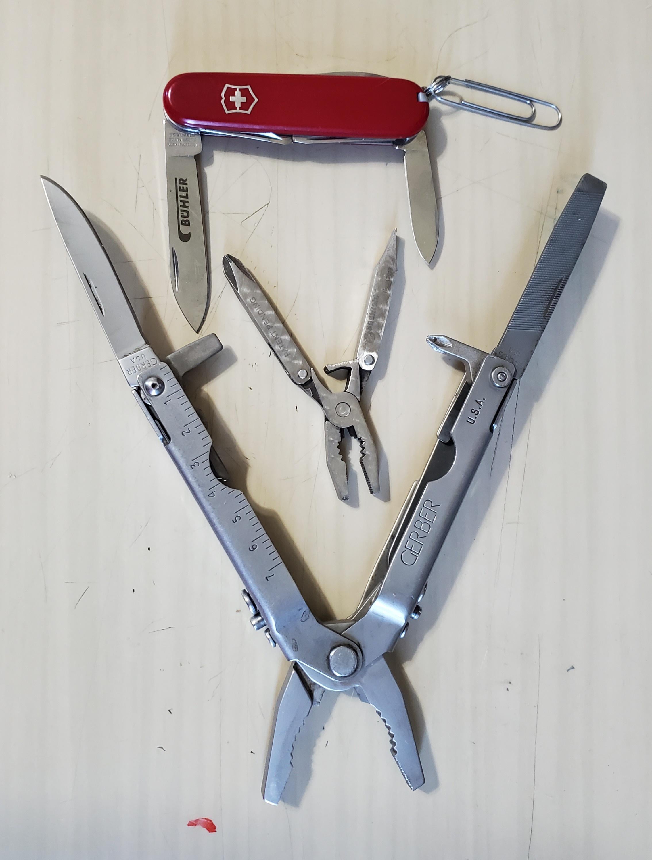 I carry a Victorinox Compact. I’ve used everything on it except for the wire stripper and parcel hook.