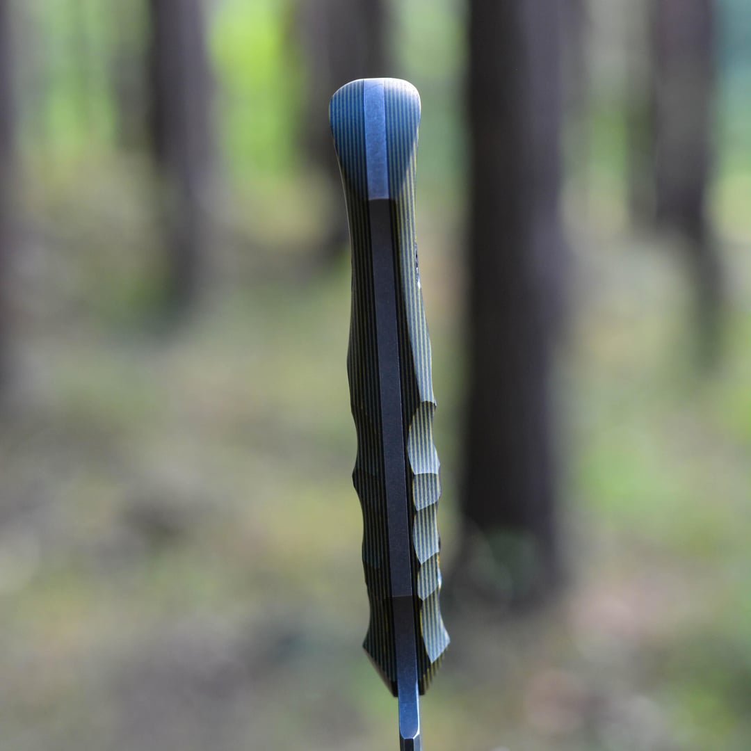 The handle is ergonomic and made from two coloured G10 and because of the colours I’ve decided to engrave bees and a honeycomb on the sheath.