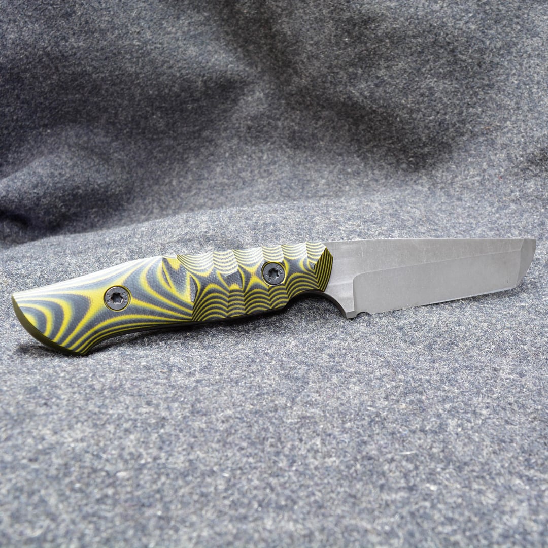 Tanto that I made out of Elmax steel HT with Cryo at final hardness of 61HRC.