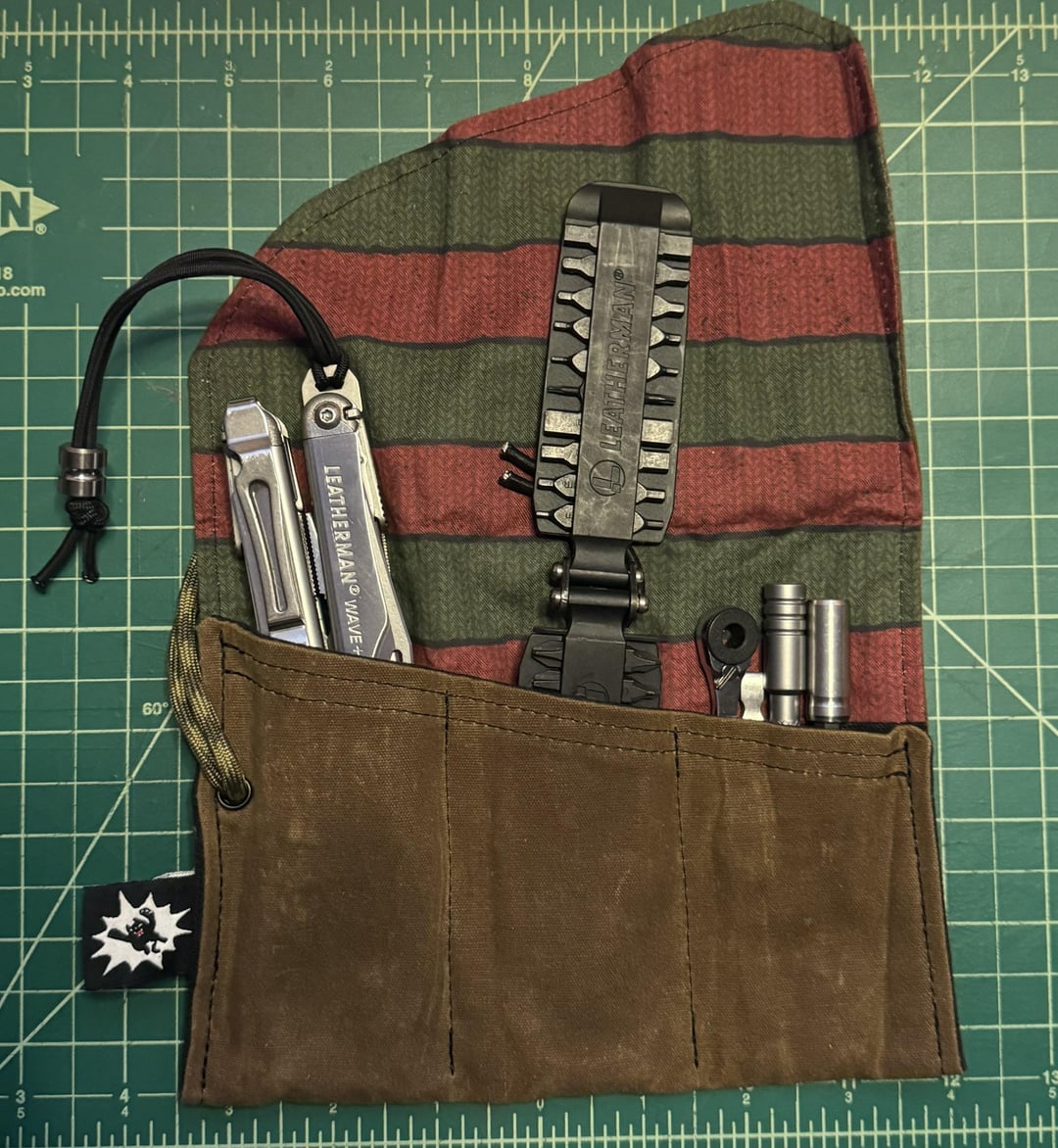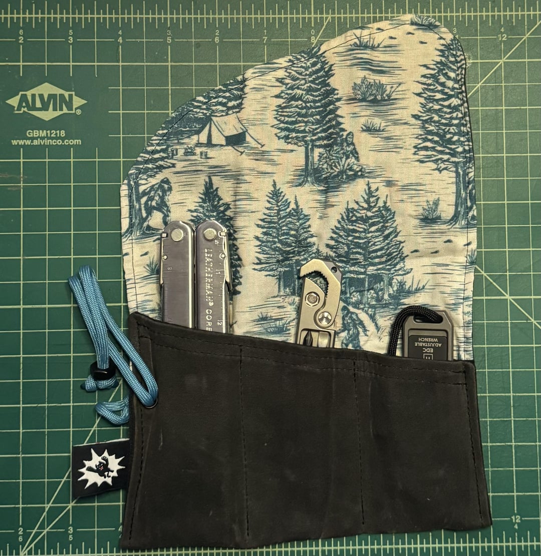 Someone posted a picture of one of these while back, I can’t seem to find the post or I would give them a shout out and say thank you. I found them on Etsy. These tool rolls are great way to store multiple multitool’s and attachments. It’s a nice addition to some of my Maxpedition pocket pouches.
