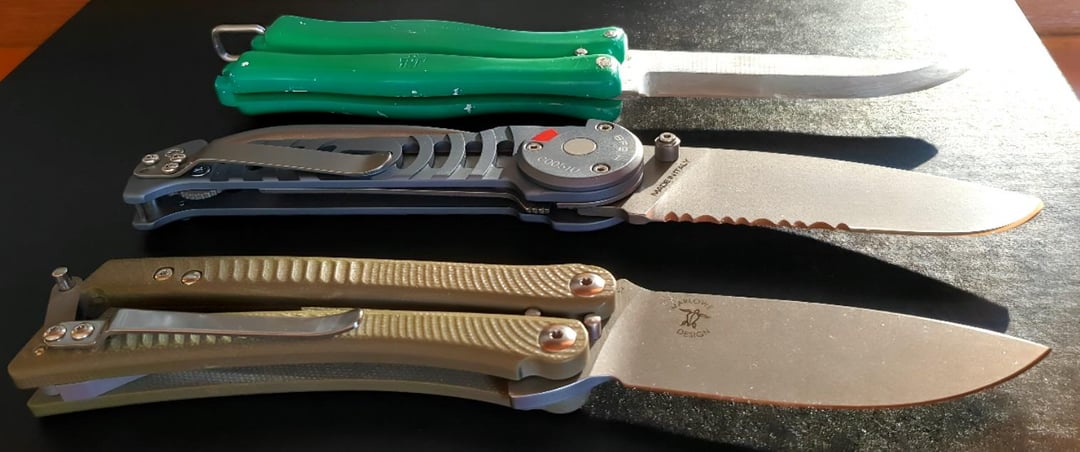 In KNIVES My favourite trio August 16, 2024 My favourite trioby fregogo13 KnifeKnives Prev Post Thoughts on Swordfin vs Shaman August 16, 2024 Next Post Multi-tool Roll August 16, 2024 Related Posts Chris Reeve OPK ⚡️🖤⚡️ January 17, 2026 Anyone know what kind of knife this is? Was my grandfathers I think January 17, 2026 Timascus or Damasteel January 17, 2026 2 Comments fregogo13 1 year ago Hackman BalisongExtrema ratio BF2 HelmsmanBenchmade 53 Mangus Hello_Kalashnikov 1 year ago Wow, never seen that color on an original Hackman before. Are you in Finland? How’d you acquire it?Write A CommentYou must be logged in to post a comment.