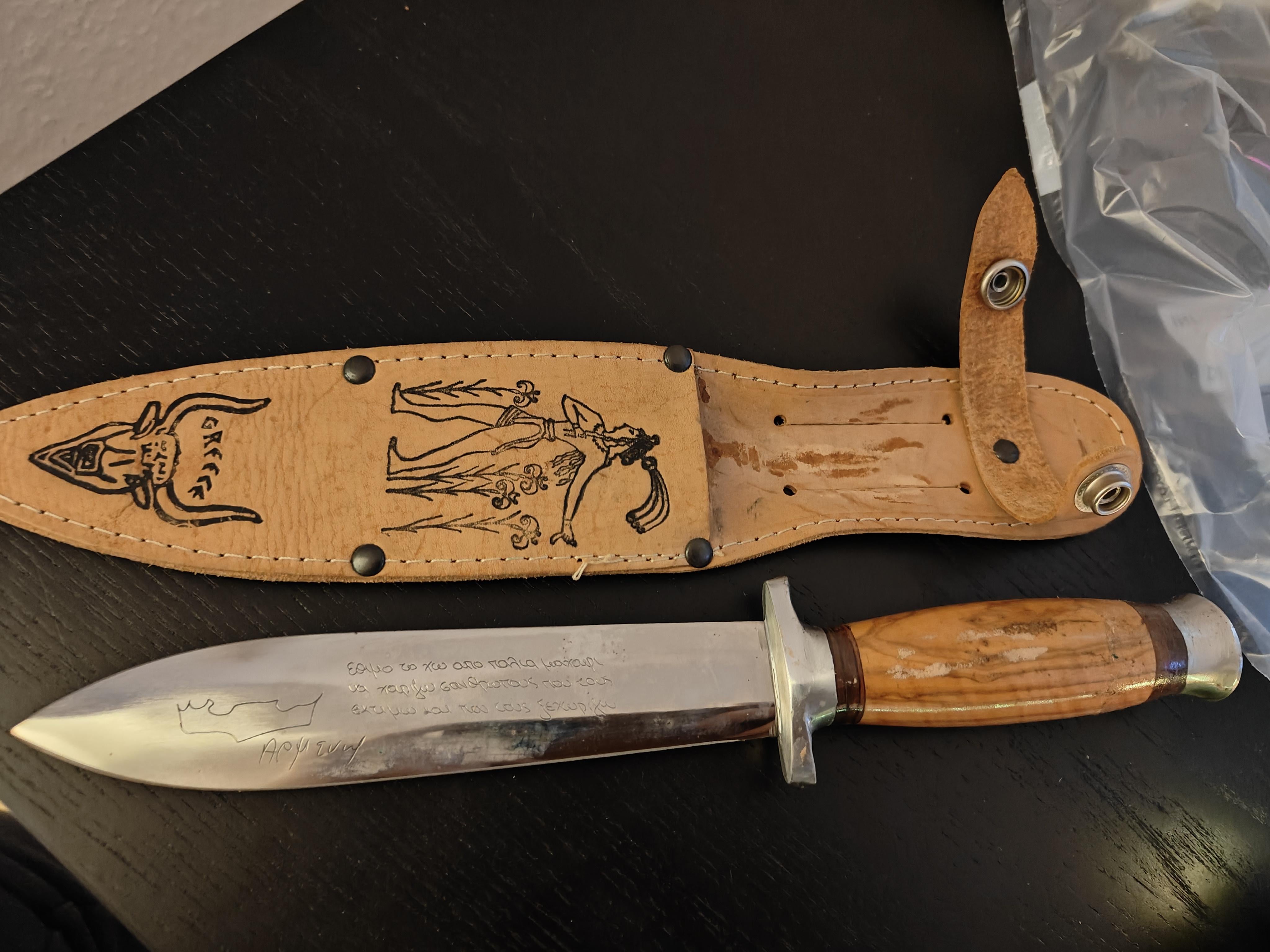 In KNIVES someone on /r/swords suggested i post this here. i inherited this from my recently diseased uncle. August 16, 2024 someone on /r/swords suggested i post this here. i inherited this from my recently diseased uncle. by softgunforever KnifeKnives Prev Post What’s everyone carrying today? August 16, 2024 Next Post NKD Spyderco Catcherman August 16, 2024 Related Posts AEB-L Stainless Chef with Curly Koa and Maple Burl. The Maple burl was a cut off from the Forged In Fire continental Calvery Sabre I made years ago and its made its way into this one lol. Carbon fiber and Micarta split with white G10 liners 🤙 January 16, 2026 AEB-L Stainless with Amboyna Burl and carbon fiber handle with carbon fiber. The split is made with Curly Koa and burlap Micarta. White G10 liners and mosiac pins. 🤙 January 16, 2026 New scales and clip on the PM2 I got for Christmas. January 16, 2026 1 Comment softgunforever 1 year ago one person claimed it is a Souvenir Mantinada Knife or “Poem Knife” from Greece.Write A CommentYou must be logged in to post a comment.