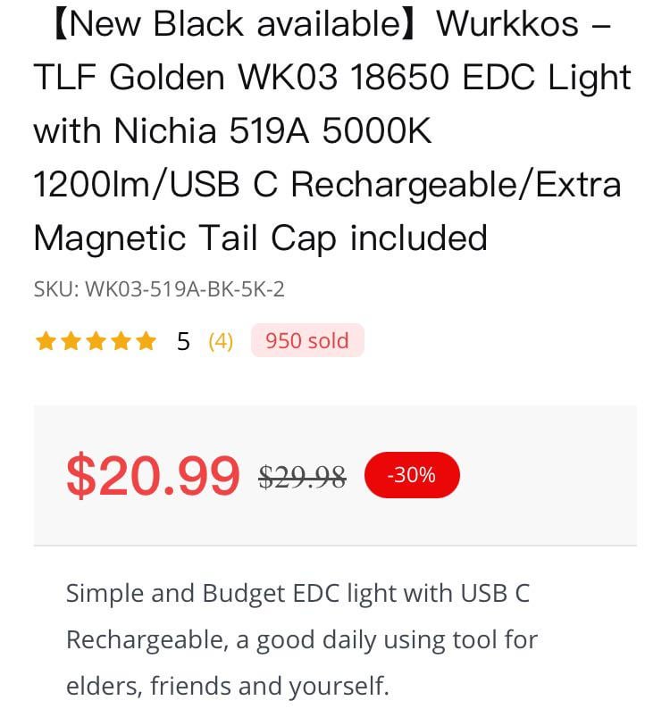 In Flashlight [PSA] Remember Golden WK03 with 519a? It’s now available in Black also August 20, 2024 Available on Wurkkos webpage: https://wurkkos.com/products/%E3%80%90new-release%E3%80%91wurkkos-wk03-golden-yellow-1200lm-nichia-519a?VariantsId=11447 by macomako flashFlashlightlight Prev Post Finished her off August 20, 2024 Next Post Office Day Carry August 20, 2024 Related Posts FFL L50 SFT70 3000k MAO vs Fenix HM61R Amber January 16, 2026 30min Turbo & High runtime measurements of Fireflies E07X V2 FFL351A HI (3700K) & L50-Sol FFL5009R (4000K) January 16, 2026 M21B LHP73B 4000k January 16, 2026Write A CommentYou must be logged in to post a comment.