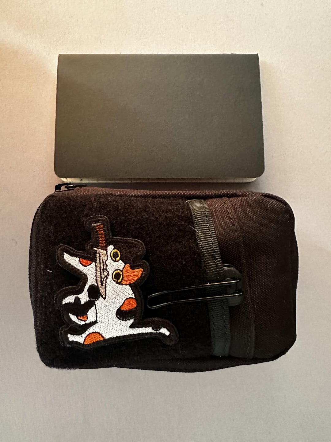 I‘m looking for a new EDC-Poch to which fits a Field Notes sized journal and has a hook-and-loop surface for attaching patches.
