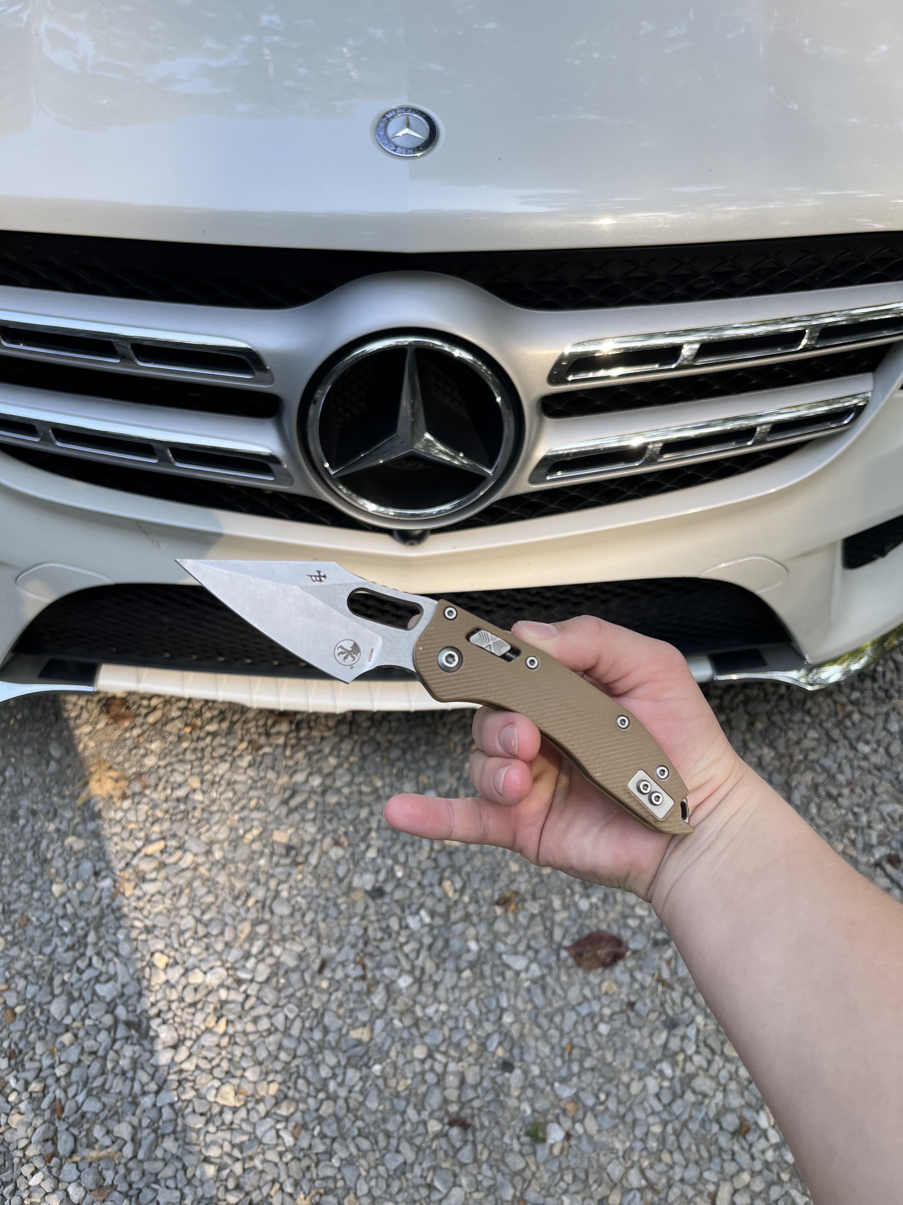 OneHugeTimeSuck 1 year ago Bro you don’t need to take a pic in front of the Mercedes. We know you drive one from the pinky sticking out.Nice knife though, love those scales