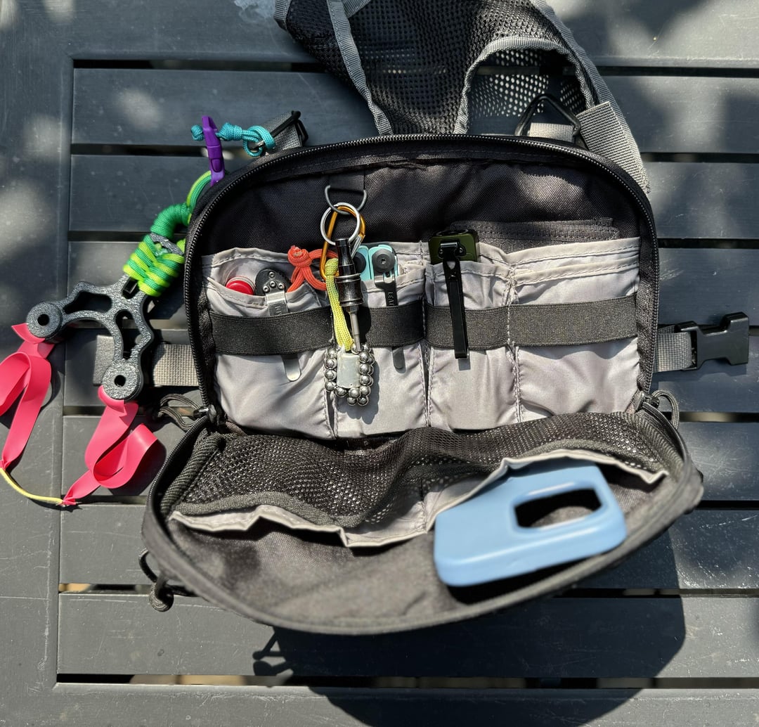 I like wearing this chest bag for my EDC. It looks a bit goofy but keeps my pockets light. Also allows me to carry some extra stuff I would usually not carry because it’s just too much in the pockets. List ;