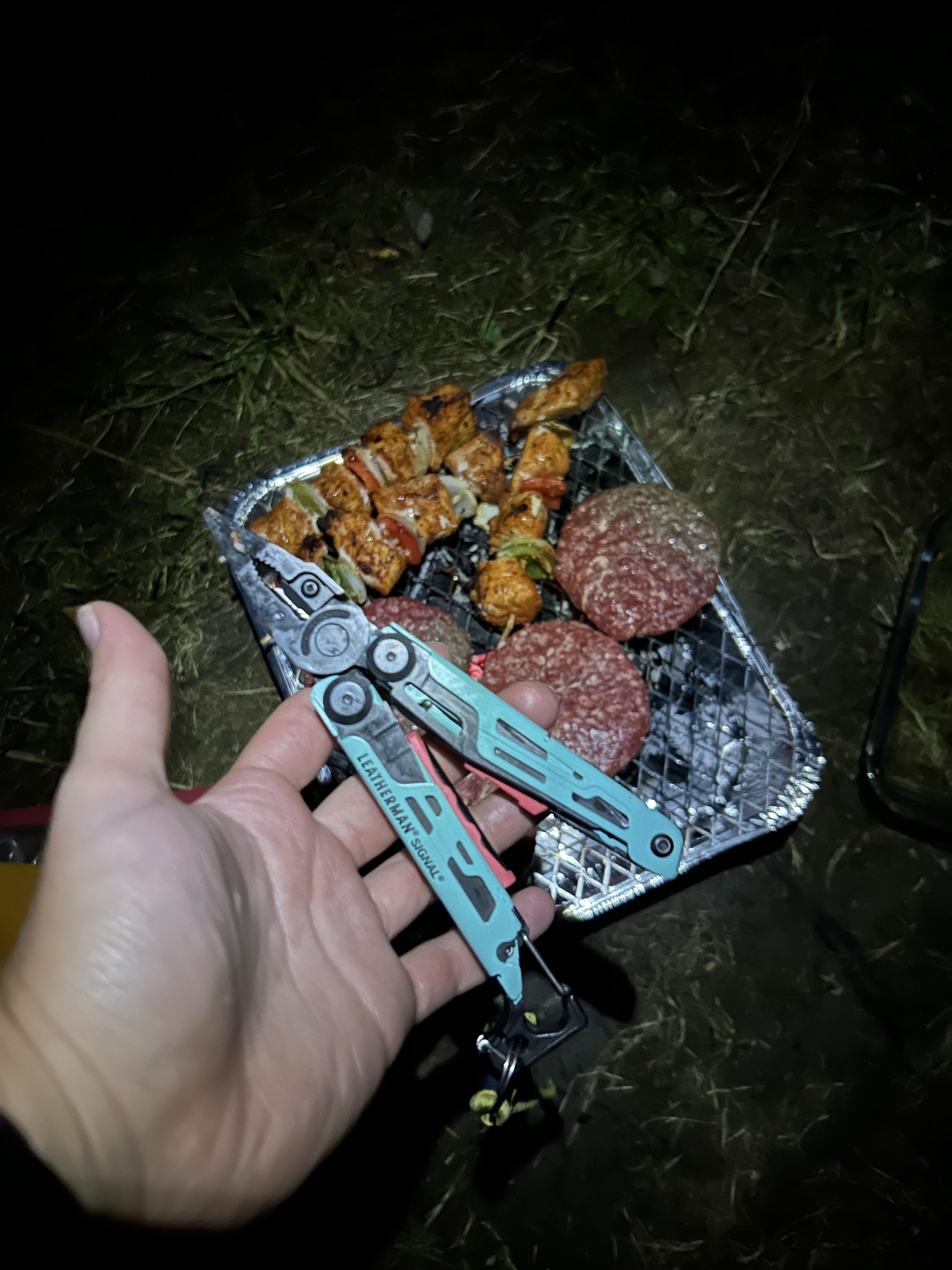 Leatherman signal helping us in our camping trip ( forgot cooking utensils)